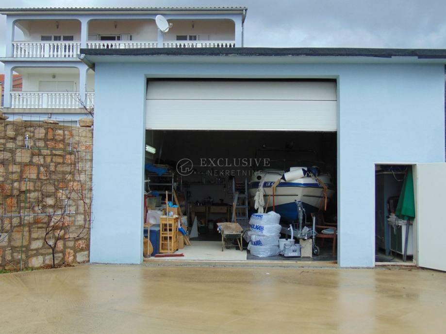 Na okucnici se nalazi zasebna garaza za gliser koji se prodaje sa vezom u Jadranovu zajedno sa kucom.Mogucnost izgradnje zasebnog apartmana iznad garaze.