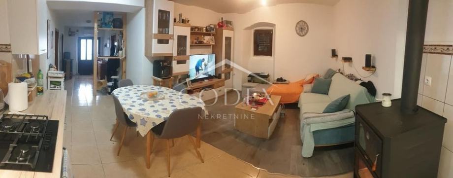 Stan veličine 70.82 m2 sastoji se od 2 spavaće sobe, dnevnog boravka, kuhinje, kupaonice, te pripadajuće ograđene okućnice od 100 m2 te drvarnice.