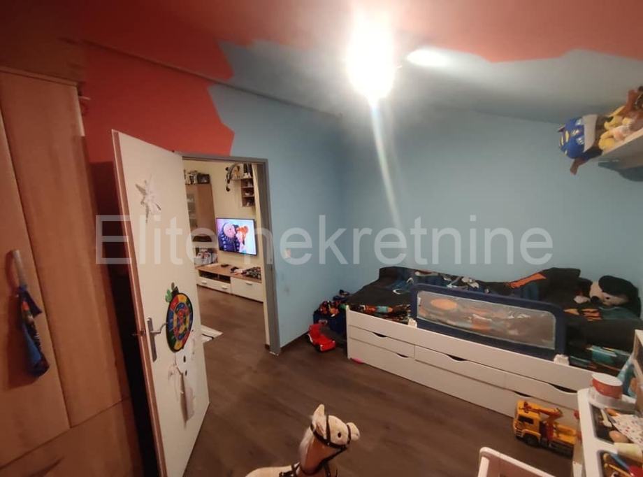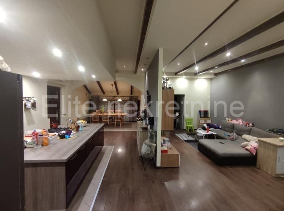 Kat je raspoređen na 115 m2 u kojem se nalazi prekrasno uređen dvosobni stan.
