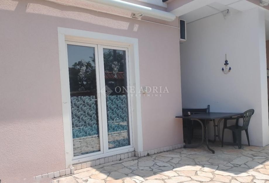 Prodaje se stan smješten u prizemlju, ukupne površine oko 50 m², s vlastitim ulazom, terasom i pristupom bazenu. Stan se prodaje potpuno opremljen, spreman za useljenje, a uz njega pripada jedno parkirno mjesto i dio dvorišta.