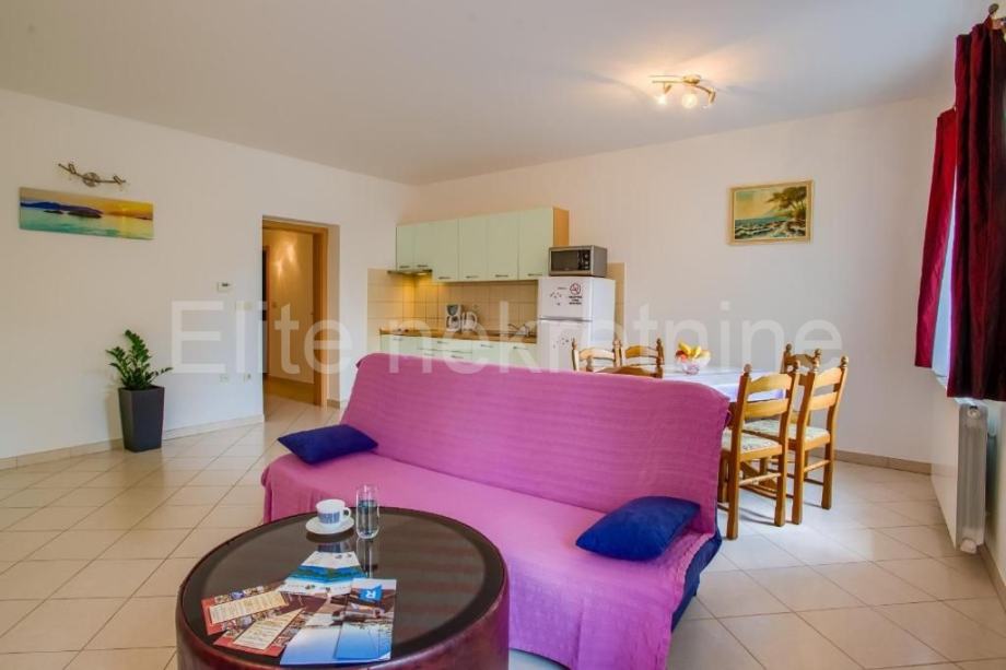 Stan se sastoji od 2 spavaće sobe, kuhinje, kupaonice, dnevnog boravka, te balkona koji pruža prekrasan pogled na more!