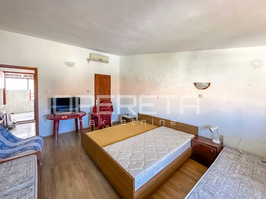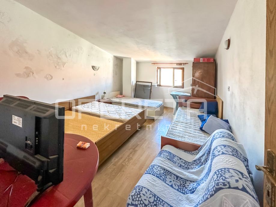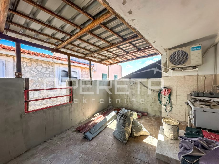 Drugi kat nudi dodatnu vrijednost – tu se nalazi još jedna spavaća soba, veliko predsoblje te prostrana terasa s koje se pruža pogled na more. Ova terasa ima veliki potencijal: može se pretvoriti u ljetnu kuhinju, prostor za opuštanje ili se po želji može zatvoriti i dodatno prenamijeniti.