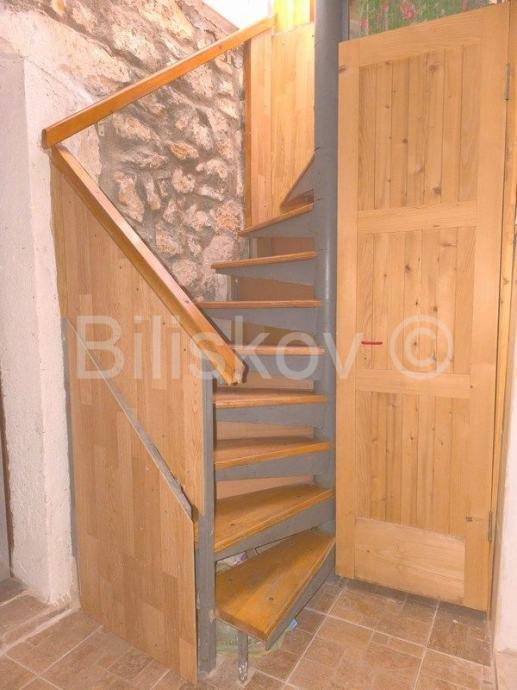 Manja, kamena autohtona kuća, tlocrtne površine 53 m2, prizemlje, 1.kat i 2. kat, dakle 159 m2 ukupno.