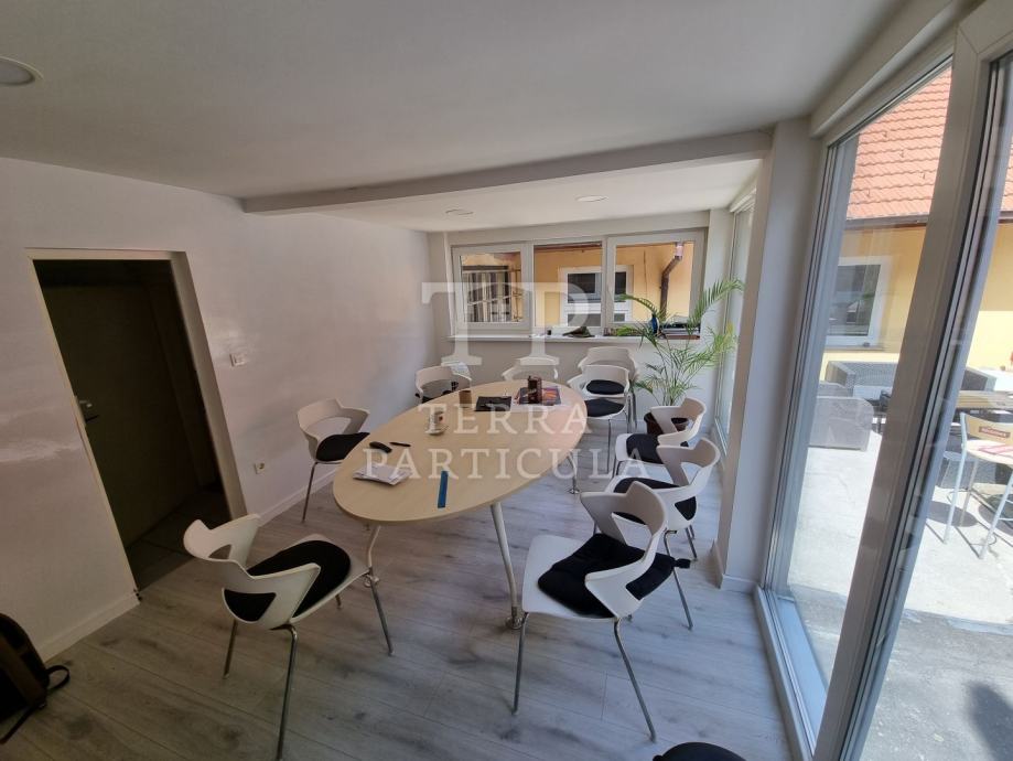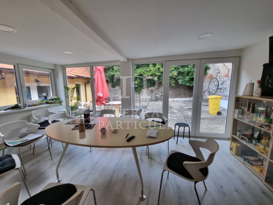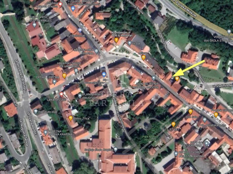 U strogom centru Krapine, u Ulici Ljudevita Gaja 5, na prvom katu poslovne zgrade na prodaju je poslovni prostor od cca 250 m². Sastoji se od više ureda, sanitarije, priručne kuhinje i prostrane terase od koje je jedan dio zatvoren staklenim stijenama. Posjeduje sve priključke, vlasništvo je pravne osobe, nema tereta, centralno grijanje je plin i u potpunosti je preuređen 2010.