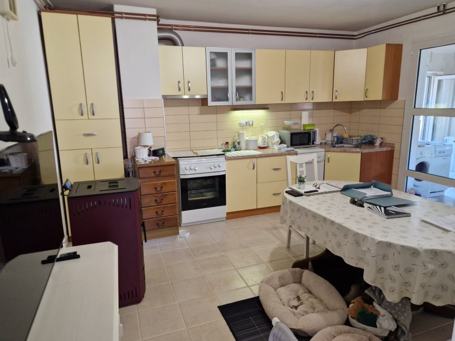 Priključci struje, vode i plina su aktivni. Grijanje je etažno centralno na plin s kojim se može kombinirati i instalirana peć na palete.
