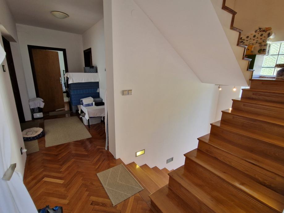 Kuća je legalizirana iz čea se iščituje 270,79 m2 brutto veličine, netto cca 230 m2. Sastoji se od tri etaže + garaža koja je spojena sa kuhinjom i blagovaonom.