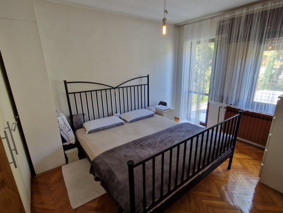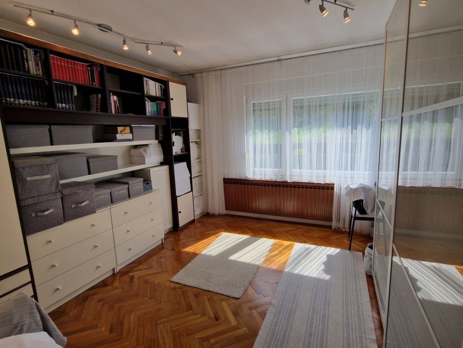 Srednju etažu čini hodnik, tri spavaće sobe, kupaonica sa WC-om te manja soba sa koje se izlazi na balkon.