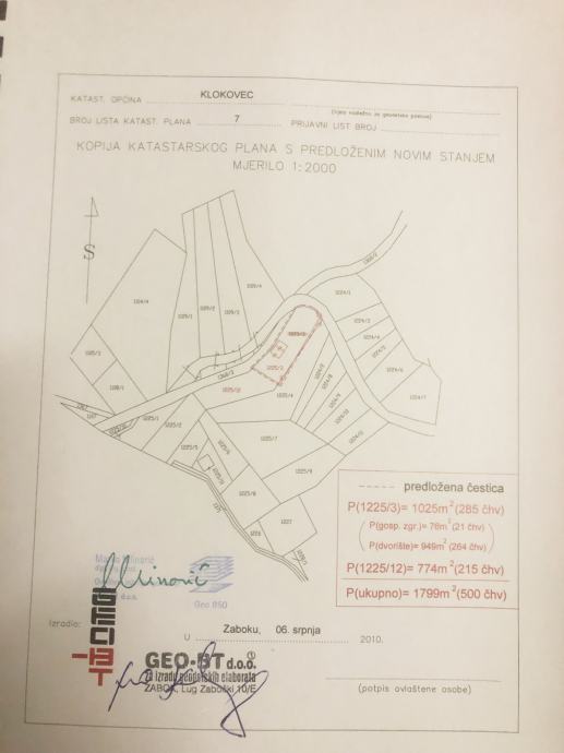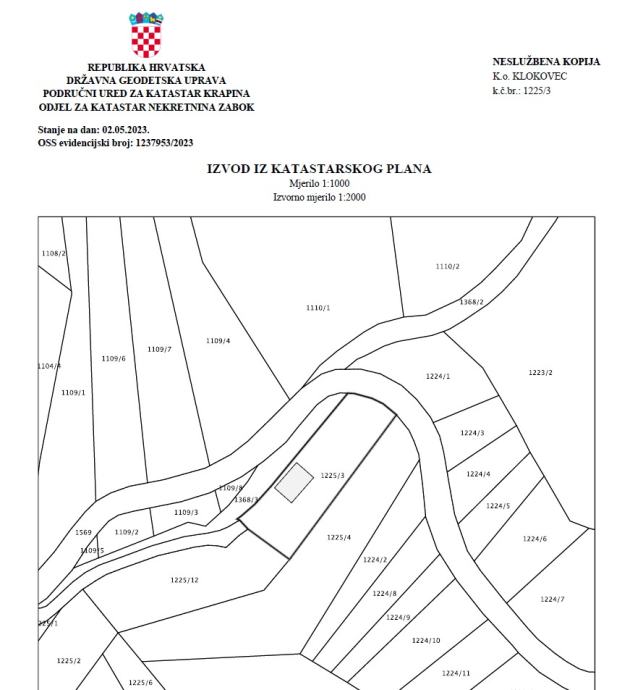 Zemljište od 2023. godine ima direktni izlaz na javni put (k.č. 1569, k.o. Klokovec) > to je vidljivo u katastarskom planu u prilogu oglasa.