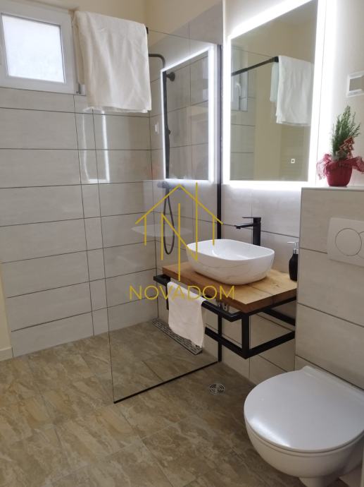 Nekretnina se sastoji od prizemlja i kata koje čine: open space dnevni boravak s kuhinjom i wellness zonom za opuštanje( jacuzzi i sauna), 4 spavaće sobe, 2 kupaone te prostrane terase s lijepom okućnicom i pogledom na zelenilo.