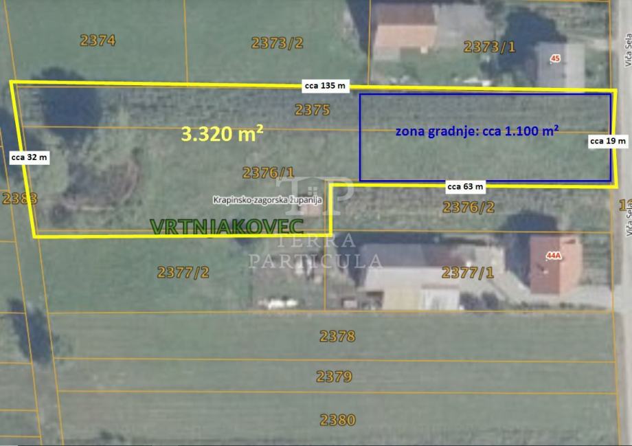 Na prodaju nudimo zemljište od 3.320 m², od kojeg je cca 1.100 m² u zoni stambene gradnje. Nalazi se uz asfaltiranu cestu između kuća na adresama Viča Sela 44a i 45.