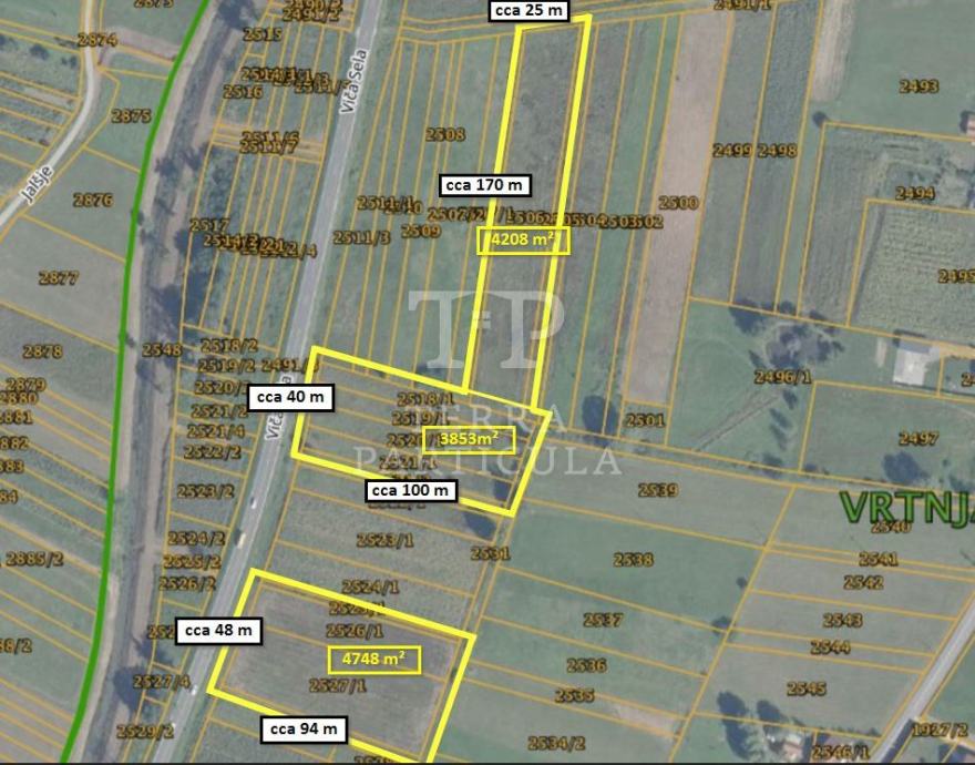 Na prodaju je više građevinskih zemljišta ukupne površine 12809 m². Nalaze se s desne strane brze ceste Zabok-Krapinske Toplice. Moguća je i parcijalna kupnja. 1/1, bez tereta.