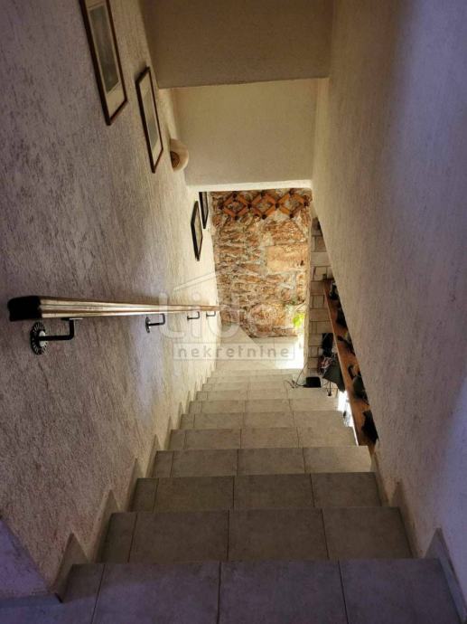 Kuća ima dva ulaza, s donje i gornje stane, natkrivenu terasa s vrtom, garažu. Iznad garaže je radiona s posebnim ulazom koja se može preurediti u apartman. Na okućnici je i konoba sa šternom te zidano spremište pokraj kuće. Grijanje je na drva (kamin), podno u prizemlju i kupaonici, klima koja grije sve prostorije.