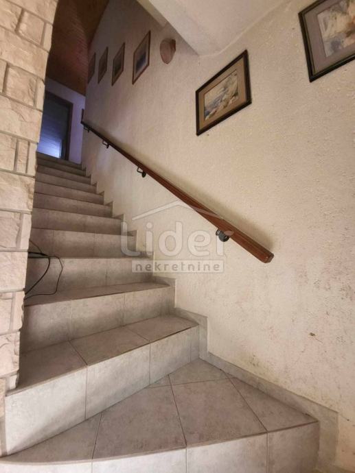 Kuća se sastoji od 85m2 stambenog prostora, u prizemlju kuhinja, blagovaonica i dnevni boravak s kaminom, na katu 3 sobe, kupaonica i terasa.