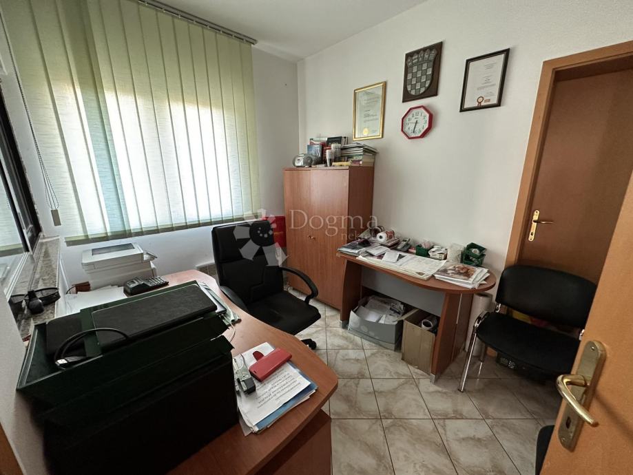 Prodajni dio ima dva ulaza, sanitarni čvor i uredski prostor, sveukupne površine 80 m2.