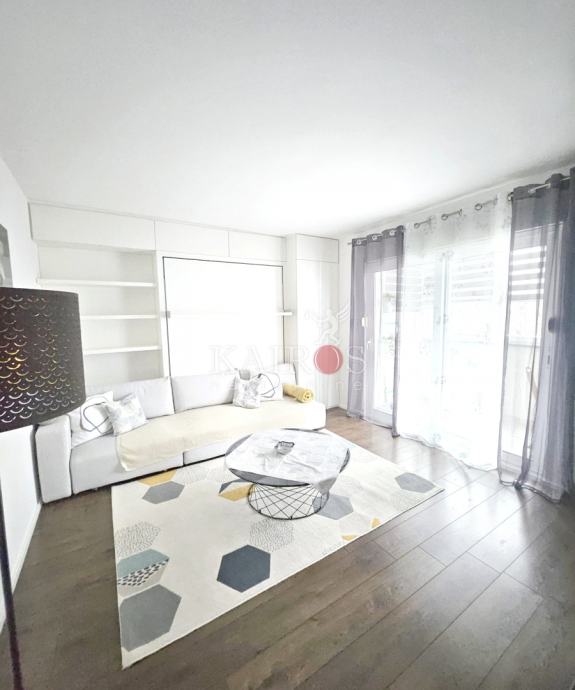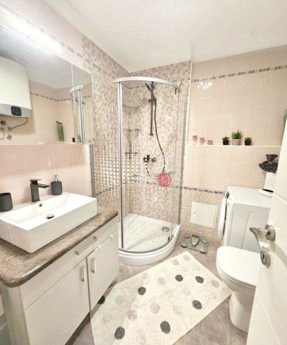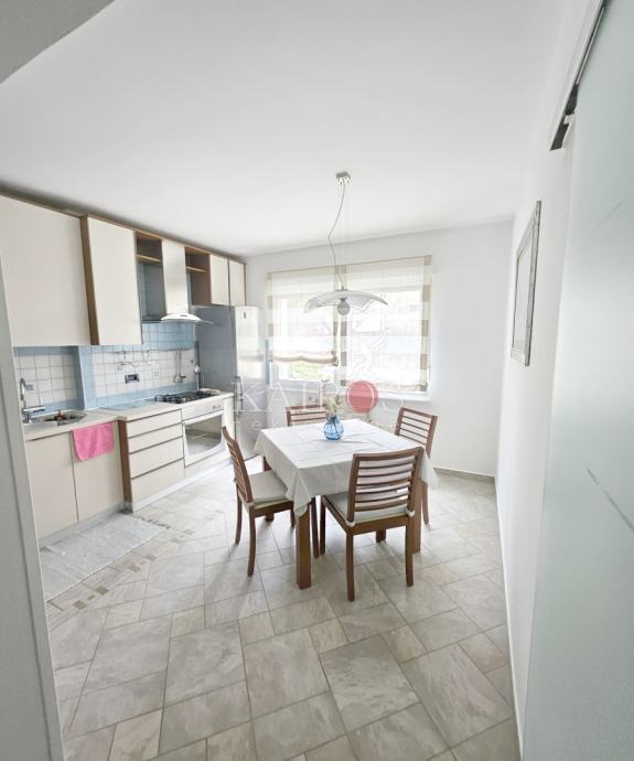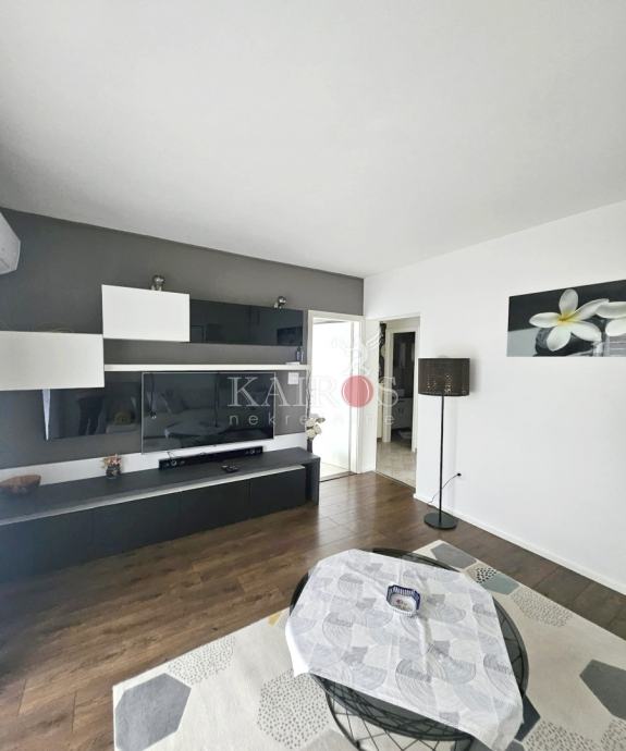 KRIMEJA, stan za dugoročni najam, jednosoban s dnevnim boravkom i ostakljenim balkonom, stan ukupne površine 50 m2. Stan je idealan za par ili za samca. Uređen i održavan, kompletno namješten i opremljen kućanskim aparatima. Nalazi se na 4. katu (bez lifta) u lijepoj zgradi s termo fasadom (novi pvc prozori).