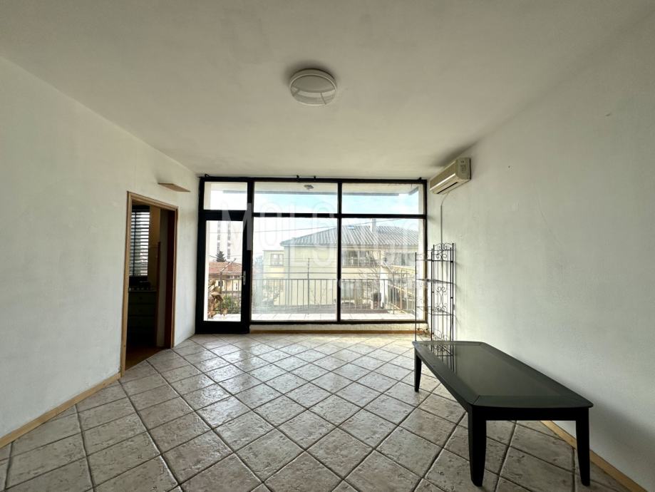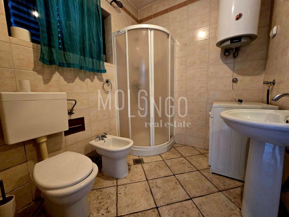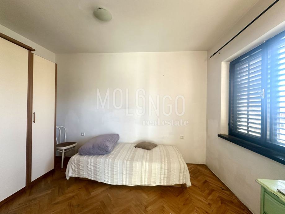 Stan se nalazi na prvom katu kuće, a sastoji se od kuhinje, dnevnog boravka s balkonom s kojeg se pruža lijepi pogled na grad i more, te spavaće sobe i kupaone,