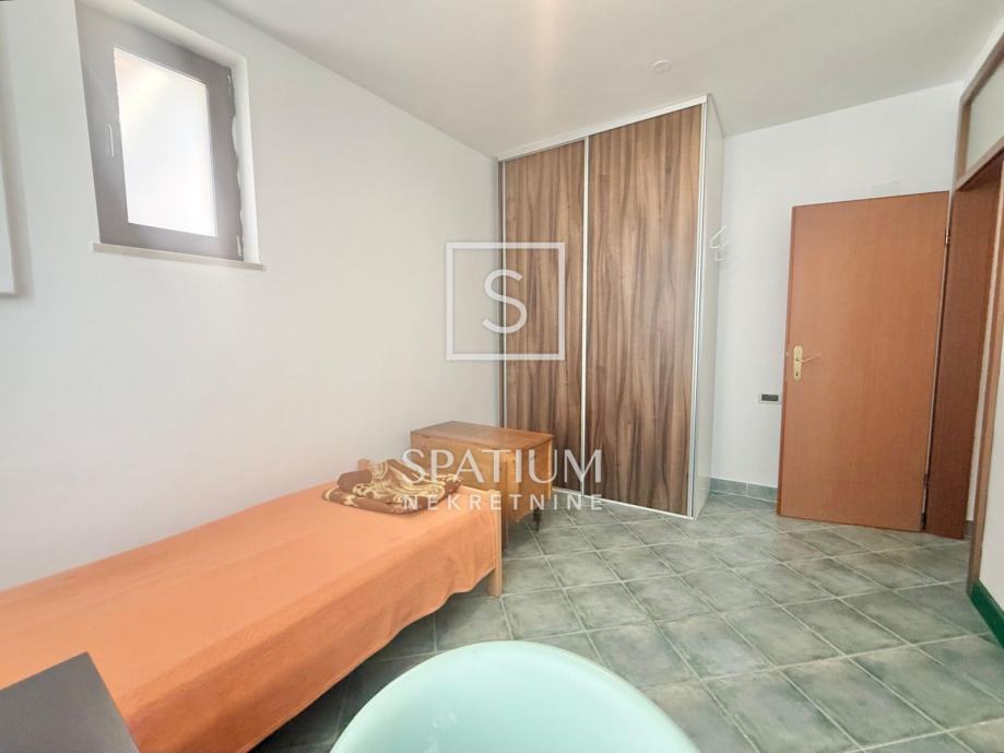 KRIMEJA, u ponudi je prostran stan ukupne površine 100 m2. Sastoji se od otvorenog dnevnog boravka s kuhinjom i blagovaonom, tri prostrane spavaće sobe (svaka s krevetom, ormarom i radnim stolom), kupaonice, i hodnika. Ispred ulaza u stan nalazi se uređeni vrt, koji može najmoprimci poslužiti kao vlastita terasa. Stan se iznajmljuje kompletno namješten i opremljen kućanskim aparatima. Grijanje u stanu je podno na struju. Stan se iznajmljuje studentima, ili radnicima - do 3 osobe.