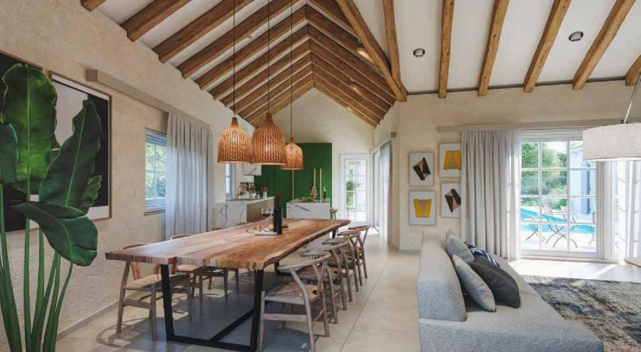 U okolici Kringe, na iznimno mirnoj lokaciji- prodajemo samostojeću vilu prizemnicu u izgradnji s pogledom na more, od ca. 208 m2 - vila ima tri spavaće sobe, dvije kupaonice, WC za goste, prostrani dnevni boravak i kuhinju- vanjska kuhinja i bazen- okućnica cca.900 m2. Vila je visoke kvalitete te postoji mogućnost odabira materijala i boja u samome uređenju. Grijanje: dizalica topline.