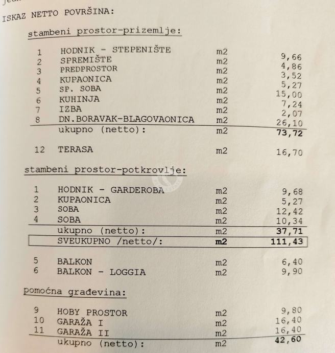 - Pomoćna građevina 42 m2 (dvije garaže + hobby prostor) sa pristupom iz kuće