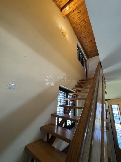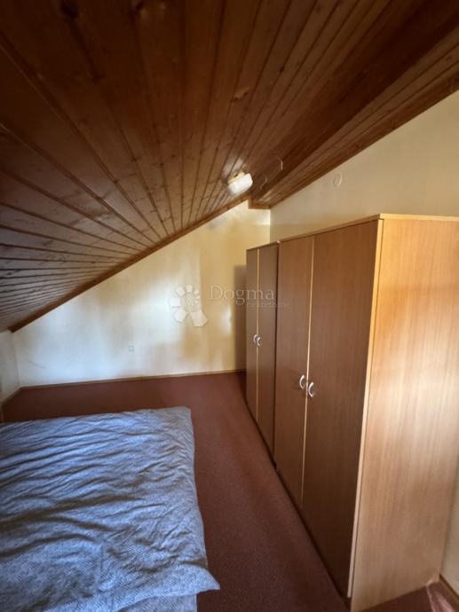 Na katu se nalaze dvije prostrane spavaće sobe te kupaonica s toaletom. Iz jedne sobe izlazi se na balkon, s kojeg se pruža prekrasan pogled na tiho i zelenilom obgrljeno okruženje.