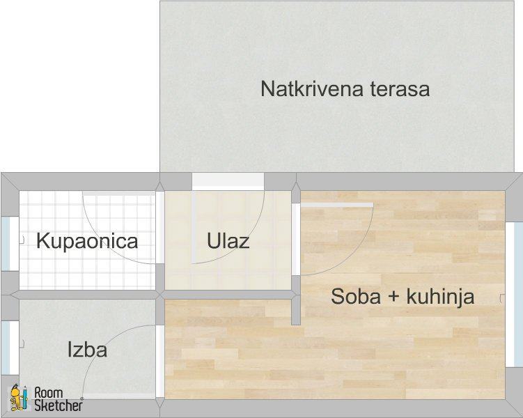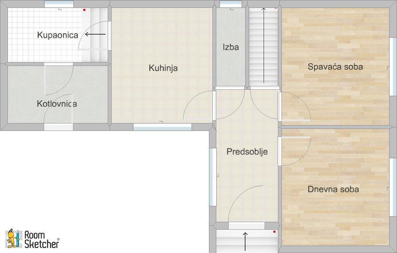 U sobama seljački pod; kuhinja, predsoblje i kupaona pločice.