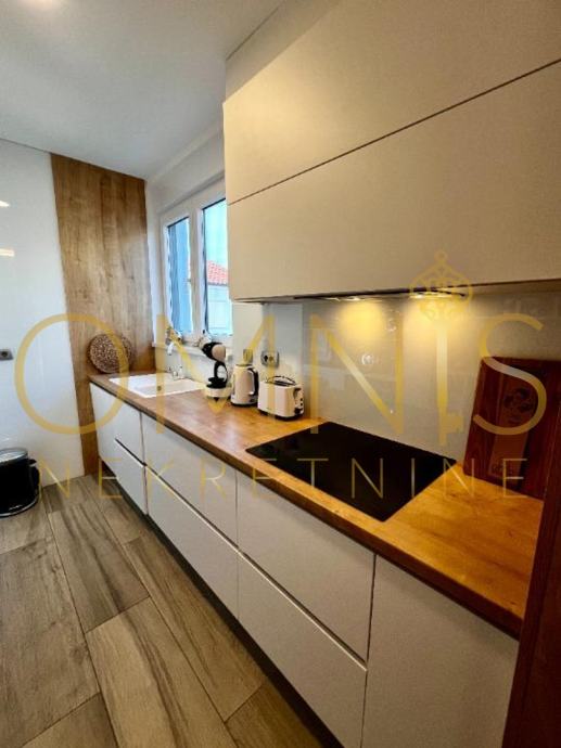 Stan je kompletno adaptiran 2023.g, te se sastoji od dvije sobe, dnevnog boravka, open space kuhinje, tri kupaonice, dvije velike terase i privatnog parkinga.