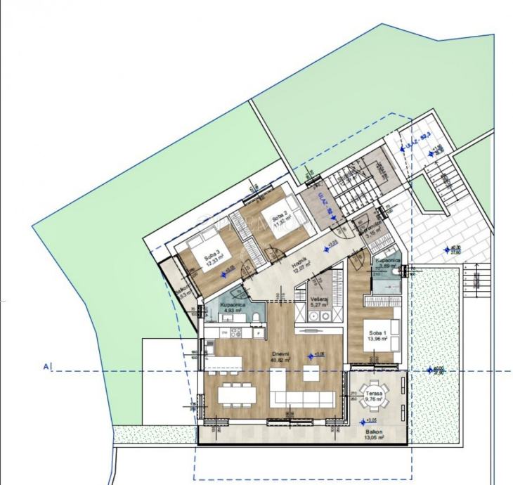 Apartmanu pripada i cca 75 m2 okućnice i 2 parkirna mjesta.