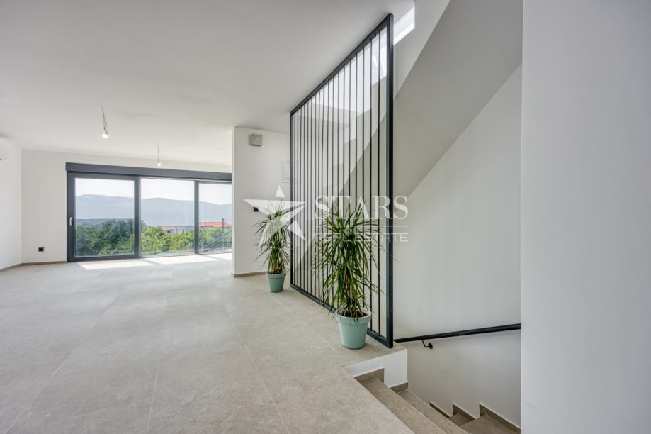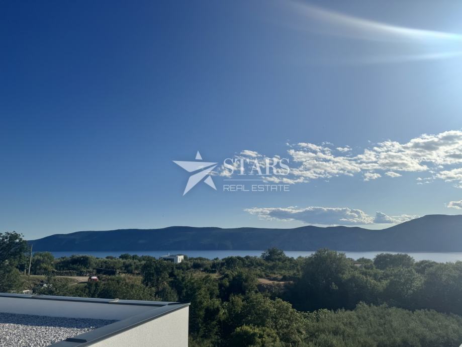 Na mirnoj lokaciji u mjestu Brzac na otoku Krku, smještena je ova moderna dvojna kuća novije gradnje, ukupne površine 135 m², s privatnim bazenom, krovnom terasom i pogledom na more.