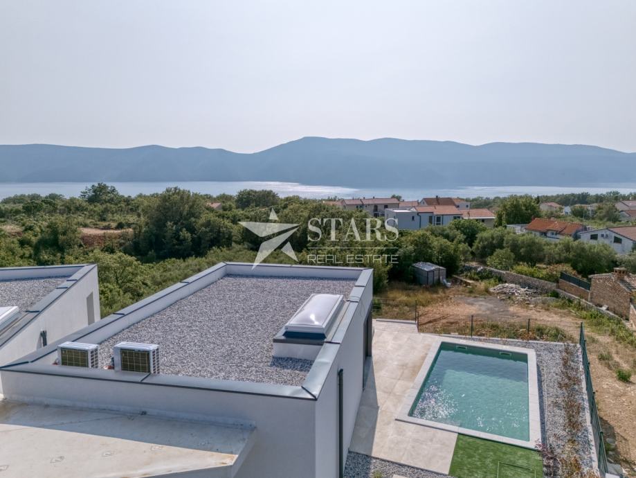 Krk, Brzac-dvojna vila s bazenom, krovnom terasom i pogledom na more (prodaja)