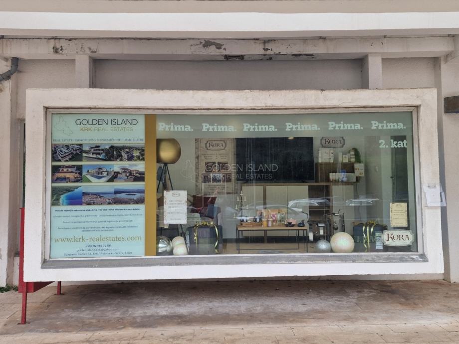 Poslovni prostor u Robnoj kući Krk, PRIZEMLJE, površine 112 m2, na duži period, mogućnost 2 izloga i više reklamnih panoa prema glavnoj cesti.