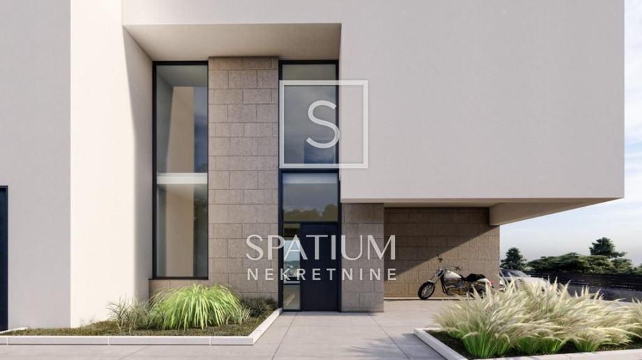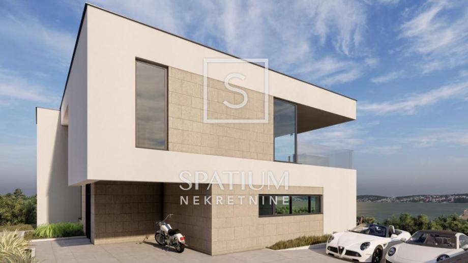 Na prvom katu, površine 143,58 m2 nalaze se tri spavaće sobe, tri kupaonice, hodnik, balkon i dvije terase. Osim toga, tu je i natkriveni parkirni prostor veličine 17,87 m2. Vila se ističe svojom atraktivnom lokacijom na rubu zelene zone, pružajući mir i privatnost. Udaljena je svega 900 metara od mora i predivnih plaža te obale otoka Krka. Predstavlja idealno mjesto za opuštanje i uživanje, a budući će vlasnici imati priliku prilagoditi interijer prema vlastitim željama i ukusu.