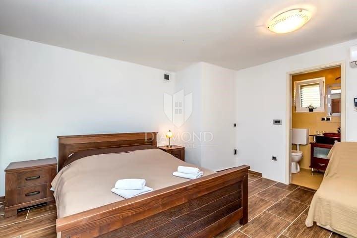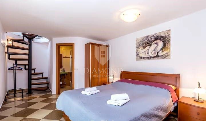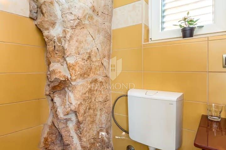 Predstavljamo jedinstvenu kuću na otoku Krku, površine 100 kvadratnih metara, smještena u prvom redu do mora. Ova neponovljiva nekretnina, stopljena s krčkom stijenom, pruža nezaboravan doživljaj morskog okruženja. Kategorizirana s četiri zvjezdice, nudi potpun komfor i savršena je za odmor. Kuća se prostire na nekoliko etaža i sastoji se od kuhinje, dnevnog boravka, tri spavaće sobe i tri kupaonice.