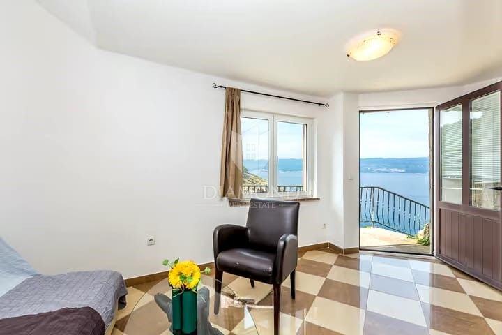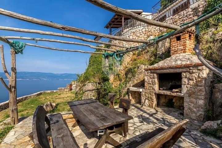 Posebna atrakcija ove nekretnine je eksterijer, koji se ističe prirodnim ljepotama i povijesnim šarmom ambijenta. Nalazi se u malenom gradiću, poznatom kao eno-gastronomsko središte otoka, prepunom bogate povijesti i autentične atmosfere. Kuća pruža spektakularan, neometan pogled na Kvarnerski zaljev, što je čini pravom rijetkošću na tržištu.