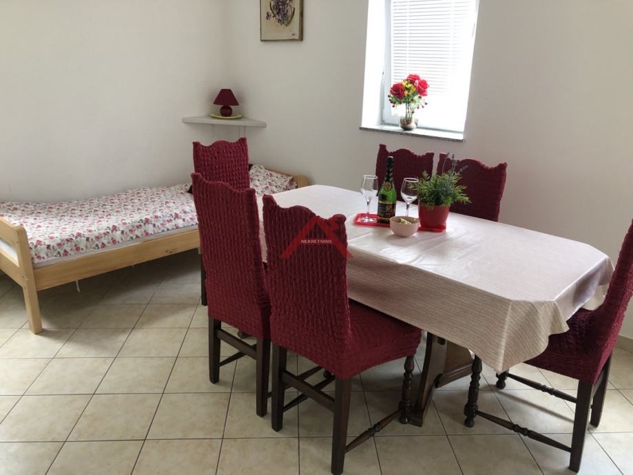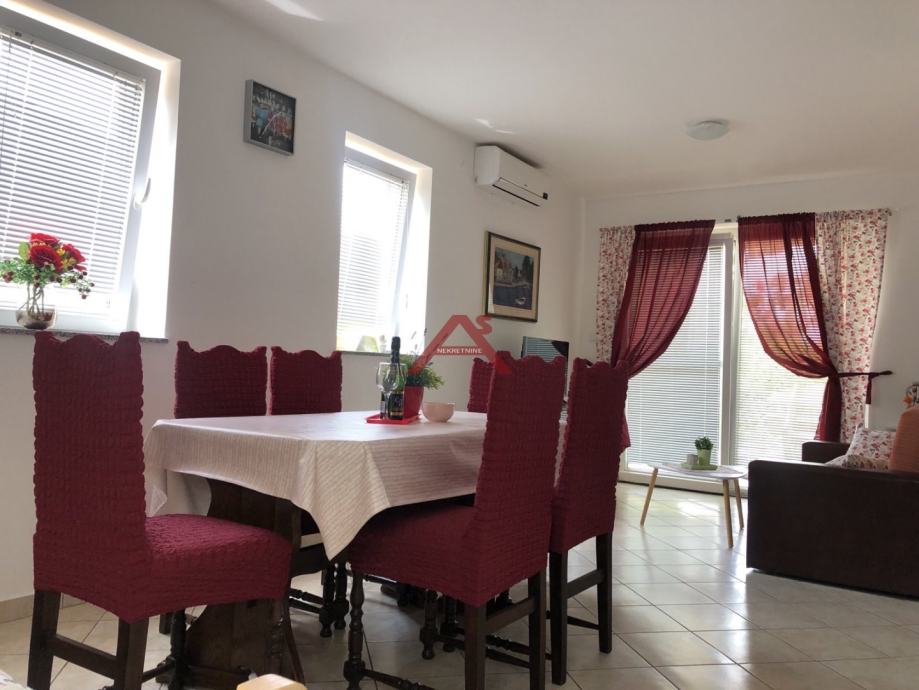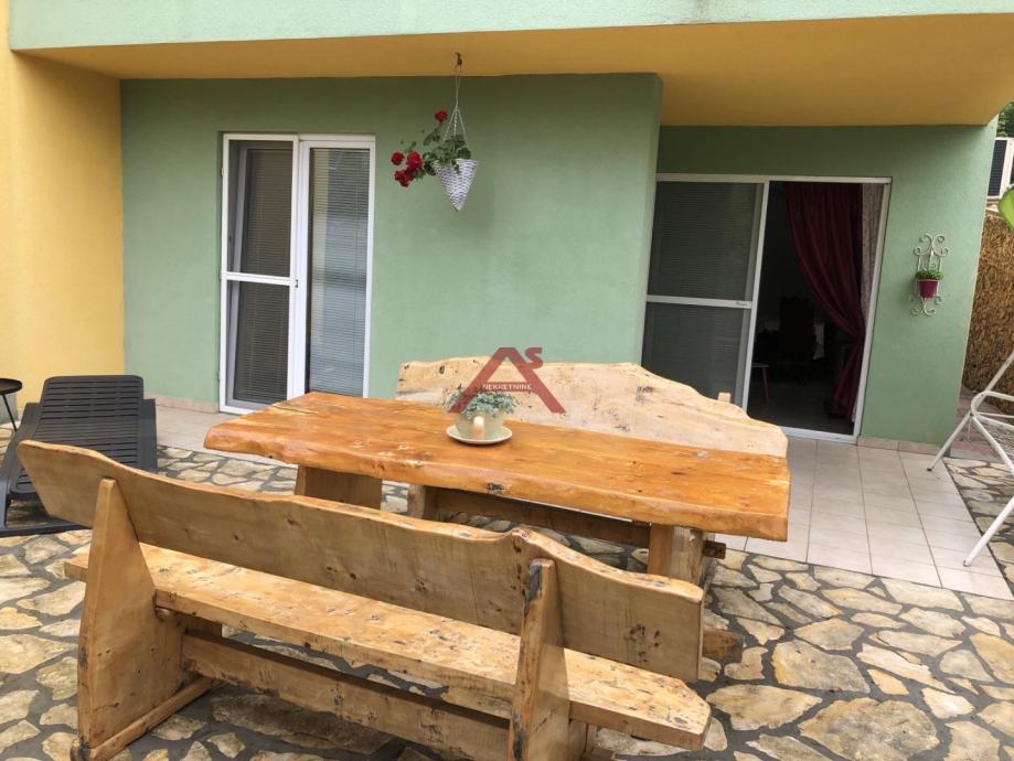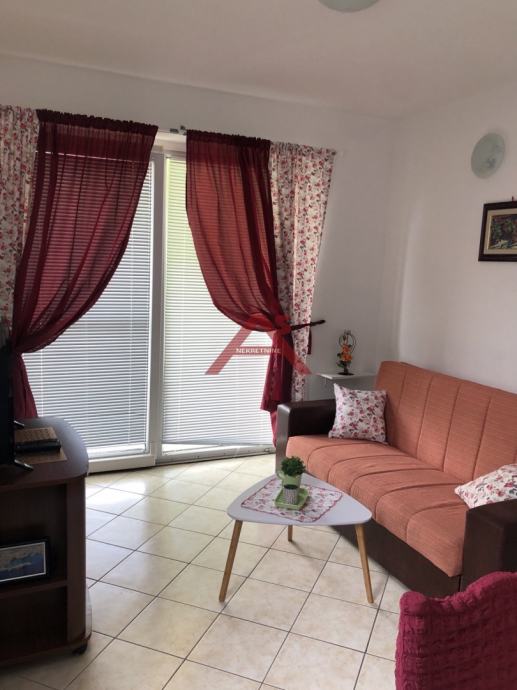 Stan ima 57 m2 stambene povrsine, jedna spavaca soba, dboravak, kuhinja, ostava, kupatilo, balkon iz kojeg se izlazi na vrt..od mjesta Klimno 600 m, stan je komplet namješten i tako se prodaje..