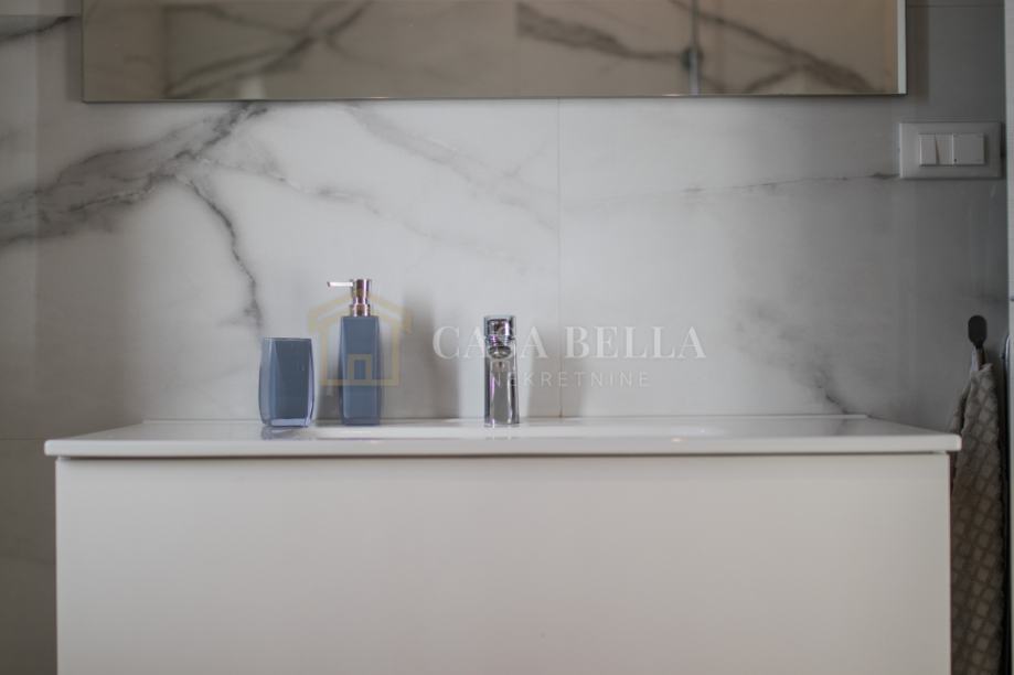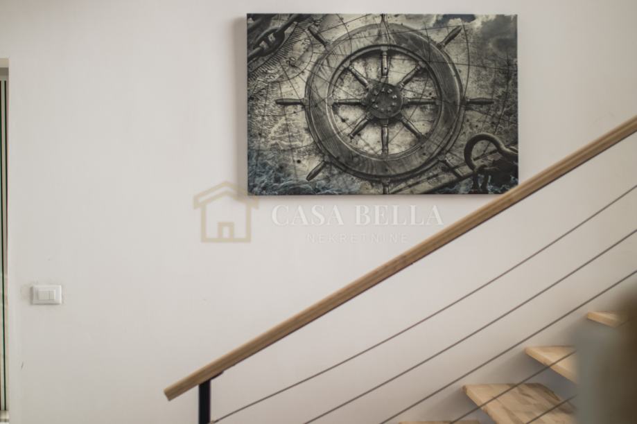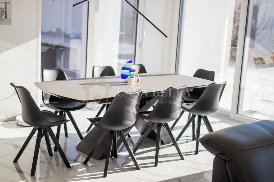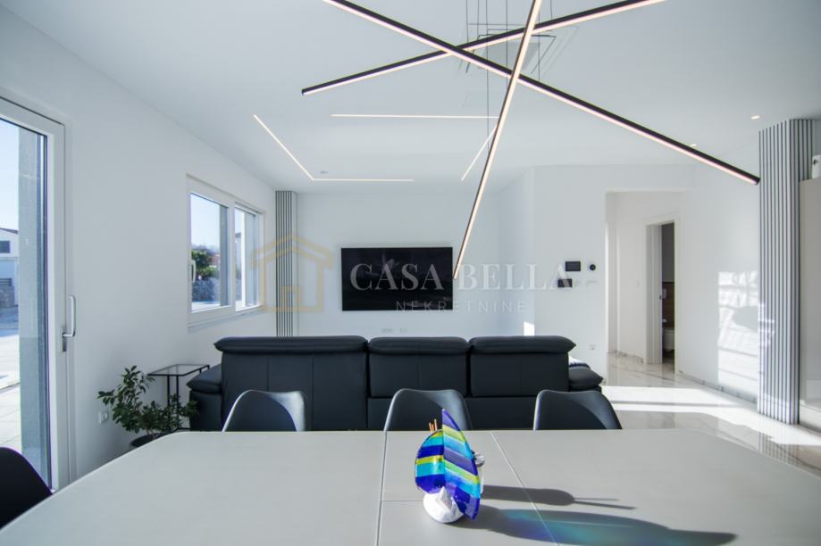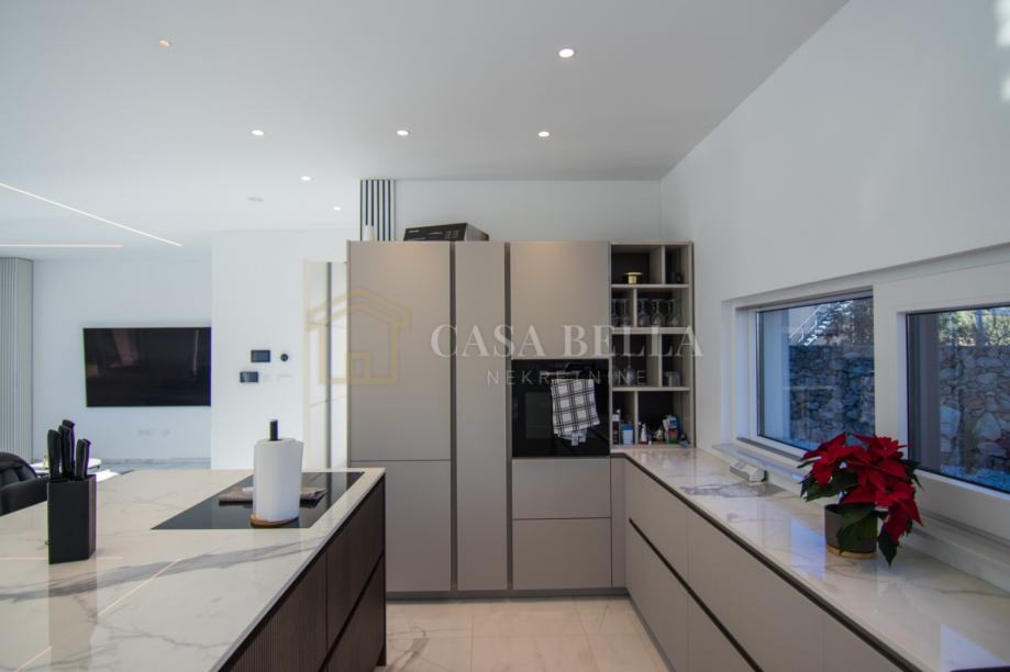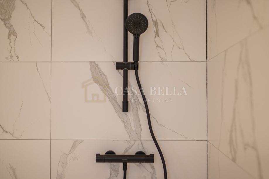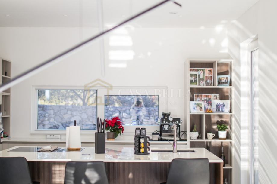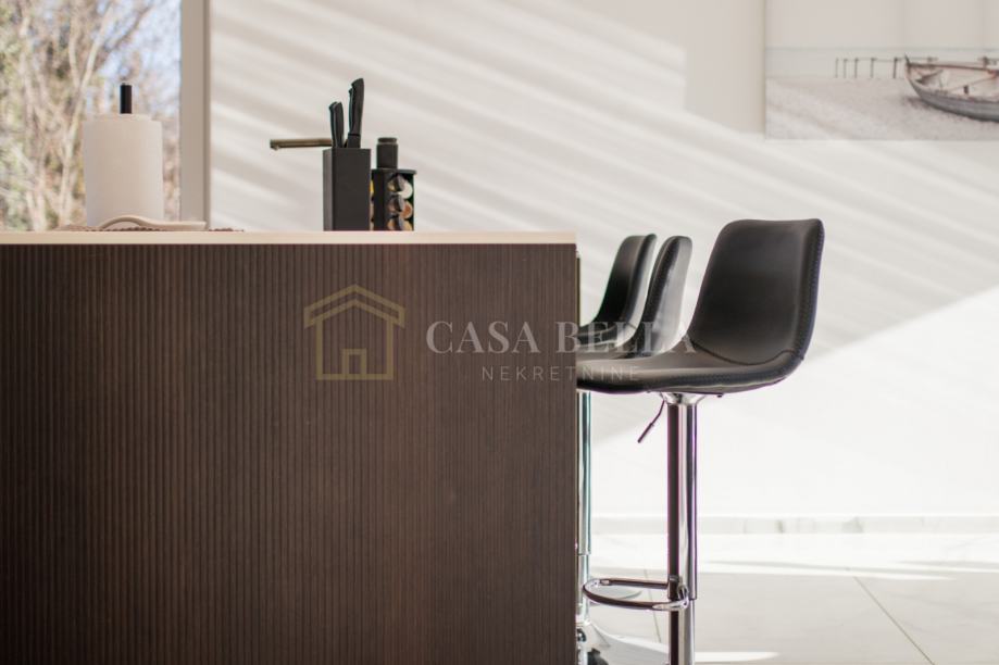 Komfor i energetska učinkovitost osigurani su sustavom Daikin kazetnih klima uređaja i podnim grijanjem na dizalicu topline, dok se za toplu vodu brine Daikin bojler zapremine 220 litara. Posebnu eleganciju prostoru daje kuhinja renomiranog brenda Veneto Cucine sa staklenim frontama, kao i vrhunska sanitarna oprema te ugradbeni ormari izrađeni po mjeri.