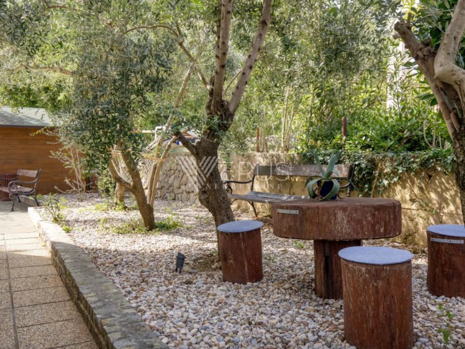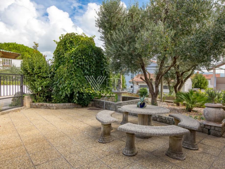 Okućnica je osmišljena za potpuni užitak – bazen sa sunčalištem, grill zona, terasa, vrtna kućica s ljetnom kuhinjom i igraonom. U suterenu se nalazi garaža, a na parceli je osigurano više parkirnih mjesta.
