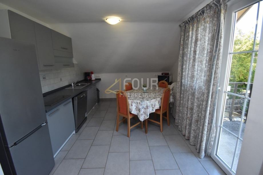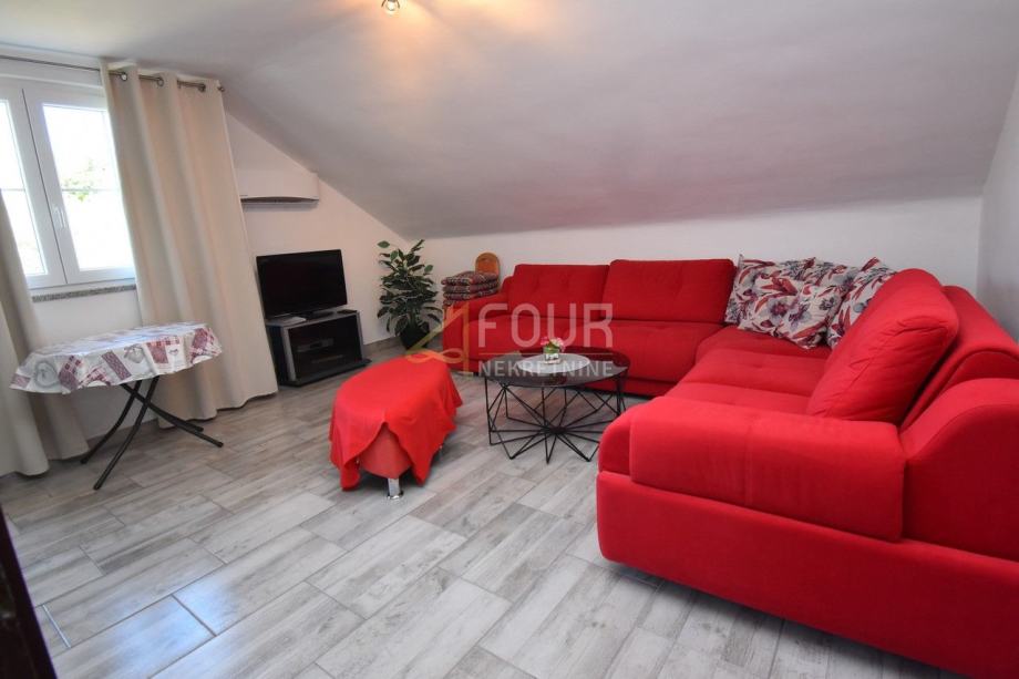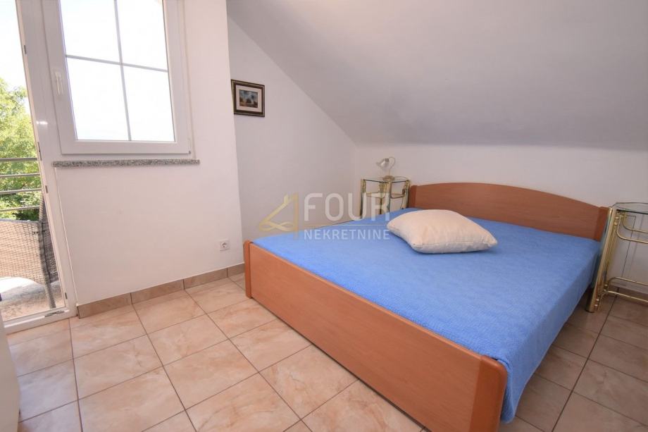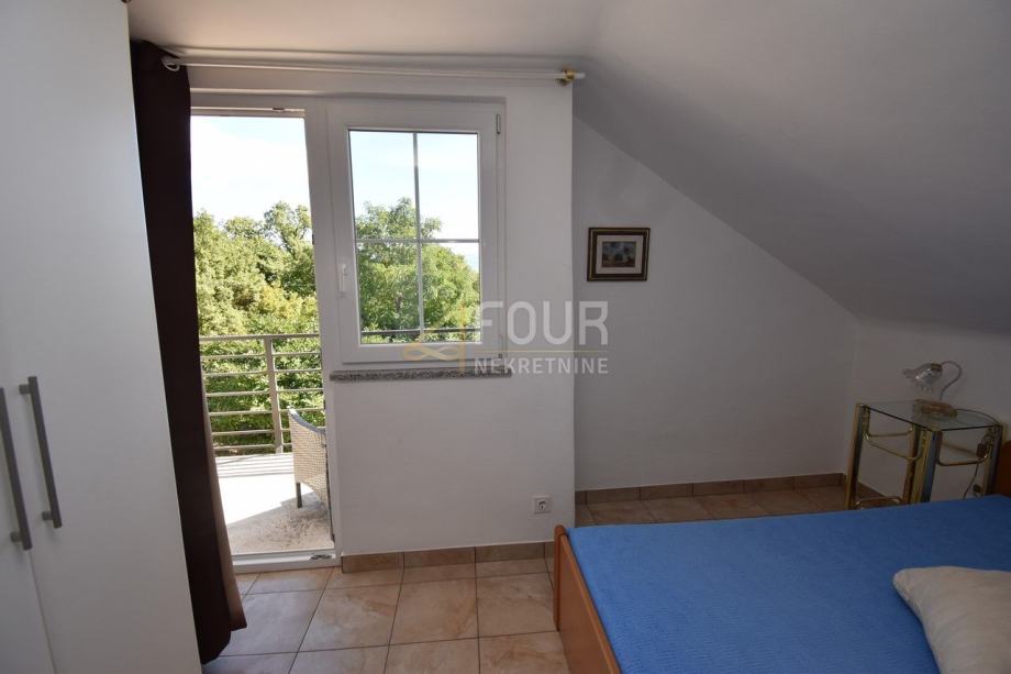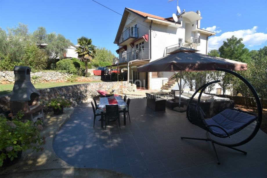 Otok Krk- u pitoresknom mjestu na otoku Krku u blizini grada Vrbnika-u Risiki sa poznatom pješčanom plažom u ponudi imamo lijepu kuću sa 3 apartmana i sa okućnicom vel. 900m2. Kuća je razvedena od suterena , prizemlja, prvog kata i visokog potkrovlja. U prizemlju se nalazi potpuno adaptiran stan koji se se sastoji od 1 spavaće sobe, kupaonice te prostranog dnevnog dijela, kuhinja, blagovaonica te dnevni boravak u otvorenom prostoru i izlazom na popločanu terasu i okućnicu. U prizemlju se nalazi još jedan manji stan koji je u fazi roh-bau. Vanjske stepenice vode na 1.kat gdje se nalazi 2s+db stan sa izlazom na veliku terasu )vel. cca 60m2. sa pogledom na more. Na visokom potkrovlju nalazi se još jedan prostran 2s+db stan sa balkonima u dnevnom dijelu i isto tako na spavaćem dijelu stana a sa koji se pruža otvoren pogled na more i Crikveničku riivjeru.