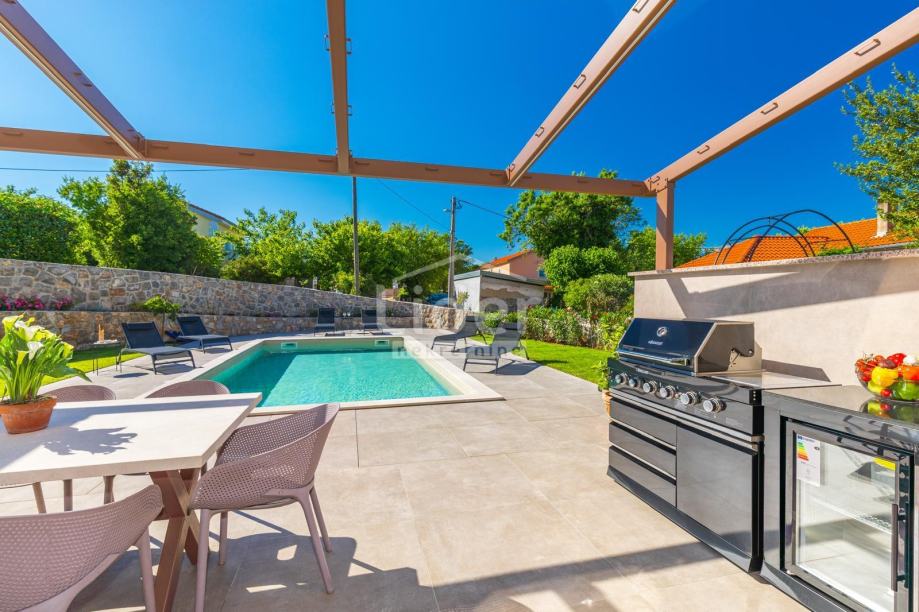 Bazen ukupne površine 30 m2 smješten je na potpuno ograđenoj okućnici od 504 m2 gdje se nalaze i dva parkirna mjesta.