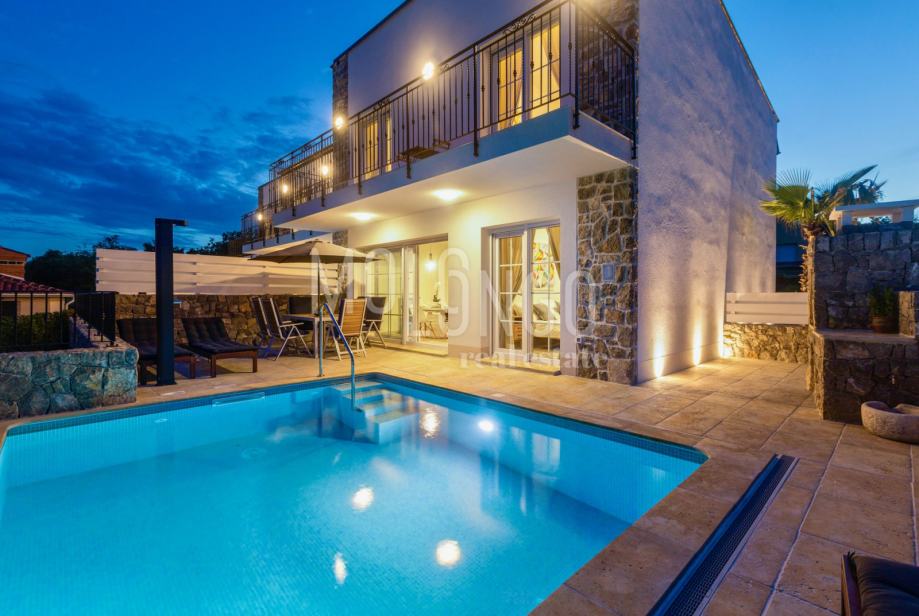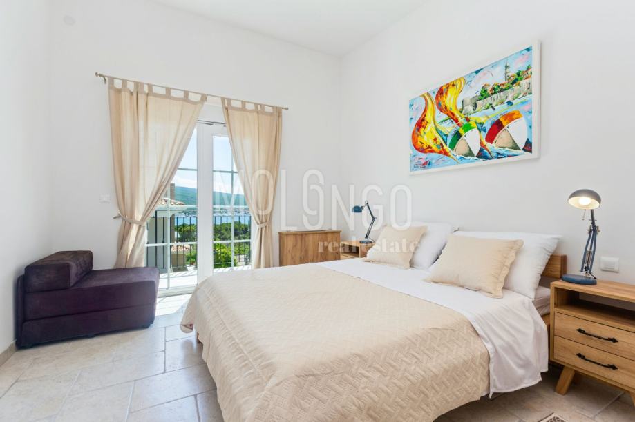 Iz ponude kuća za odmor na otoku Krku izdvajamo ovu bezvremenski uređenu katnicu u nizu.
