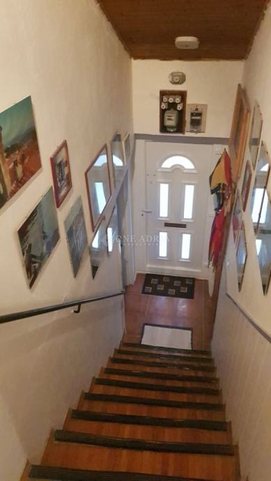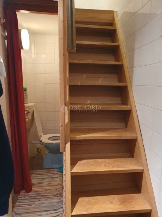 * Potkrovlje: dnevni boravak/spavaća soba s prostorom za sjedenje i izlazom na terasu s pogledom na krovove starog grada, opremljenu zidanim roštiljem. Stepenice dalje vode do izdvojene sunčane terase s panoramskim pogledom na otoke Rab i Cres.