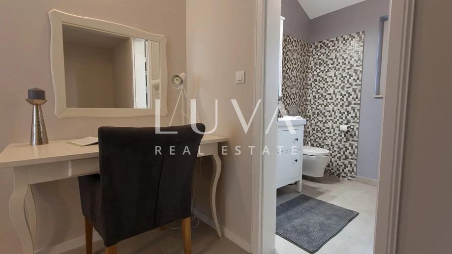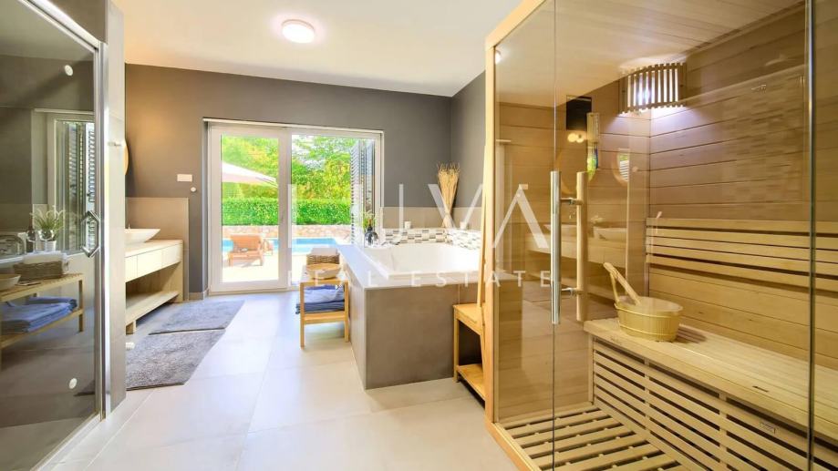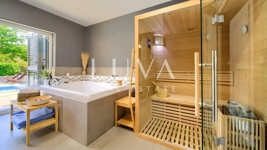 Vila raspolaže s četiri udobne spavaće sobe i tri moderno uređene kupaonice, osiguravajući maksimalnu udobnost za obitelj ili veće društvo. Za potpuni osjećaj luksuza tu je i privatni bazen, unutarnji i vanjski jacuzzi te sauna – savršeno za opuštanje u svako godišnje doba. Interijer je promišljeno uređen kako bi odgovarao zahtjevima suvremenog gosta, a vanjski prostor nudi ugodan ambijent za boravak na otvorenom.