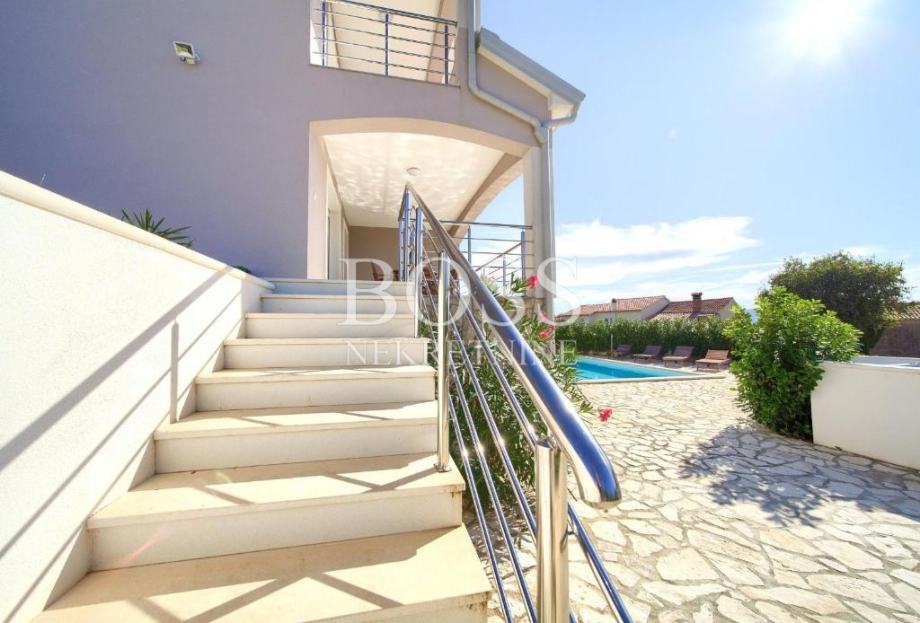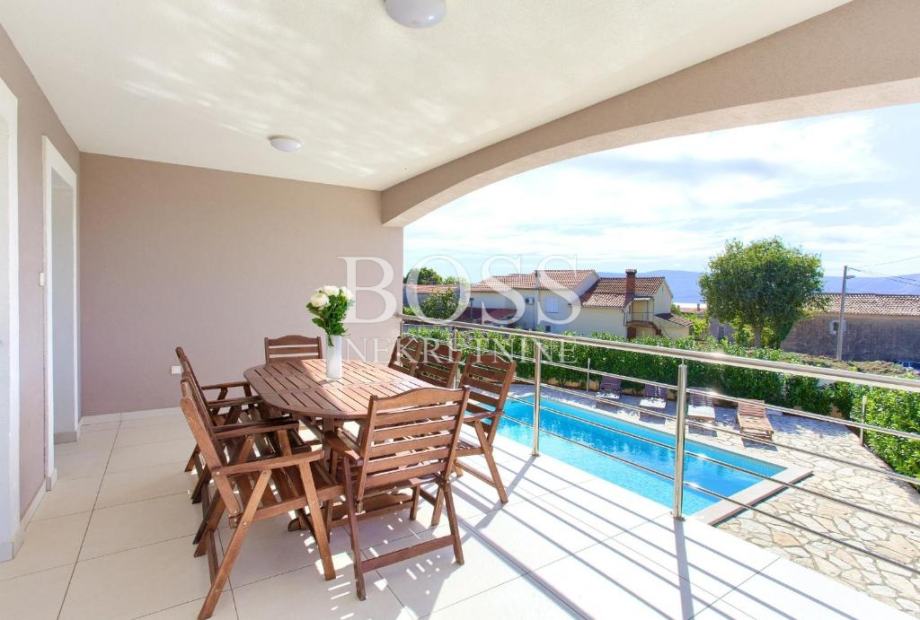 U šarmantnom selu Linardići, u blizini grada Krka, u ponudi imamo prekrasnu vilu s bazenom. Ova moderna, adaptirana vila s bazenom pruža užitak i privatnost za obitelji i veće grupe ljudi ako se kupi za investiciju. Interijer ove kuće je pažljivo uređen kao i iskoristivost prostora. U prizemlju se nalazi spavaća soba s kupaonom, veliki dnevni boravak, blagovaona i kuhinja. Iz tog prostora izravno se izlazi na prostranu terasu, dovoljno veliku za druženja. Na katu kuće su tri spavaće sobe s bračnim krevetima i dodatne tri kupaone, dvije s tuš kabinama i jedna s kadom. Vanjski dio krasi bazen, kutak za djecu, grill za odrasle i privatni parking. Udaljenost od prvih uređenih plaža je 4.5km,m grada Krka 12km, a grad Rijeka 25 minuta vožnje. Izvrsna prilika, prvenstveno kao investicija, jer je vila uspješna u turističkom poslovanju. Boss, kontakt: 091/752-0333 Anita