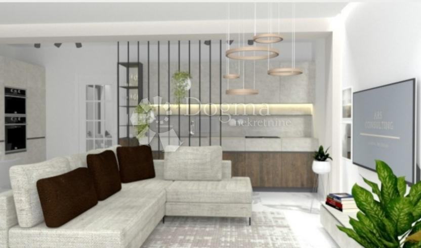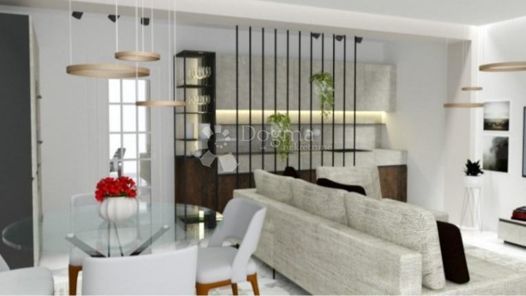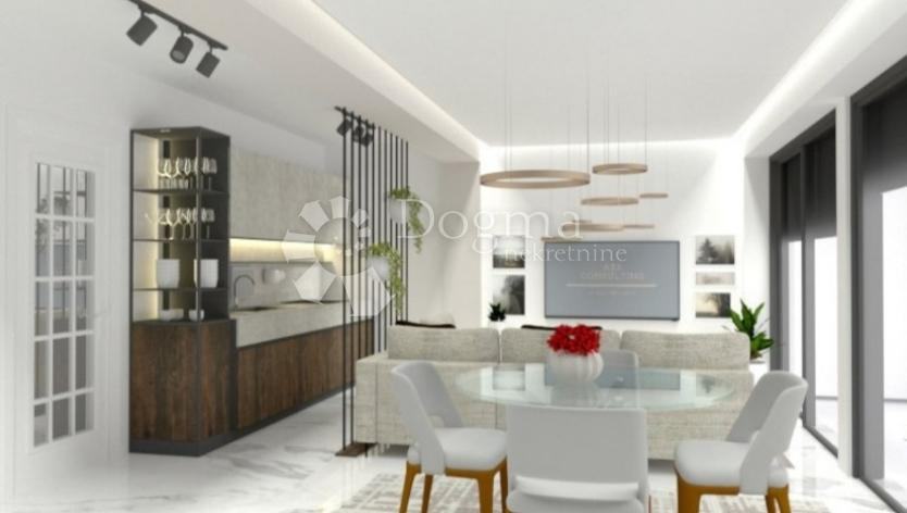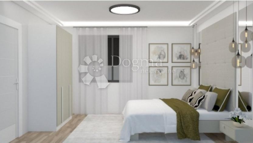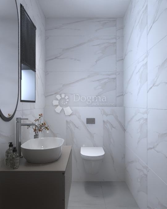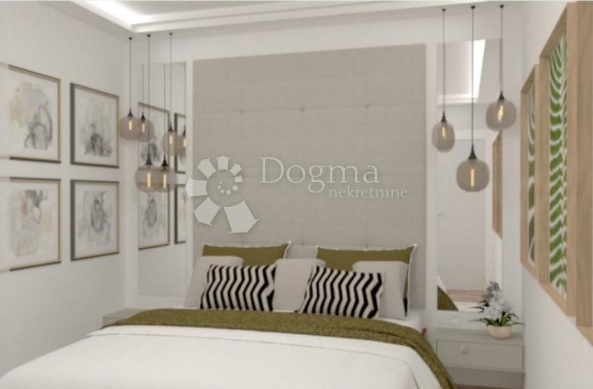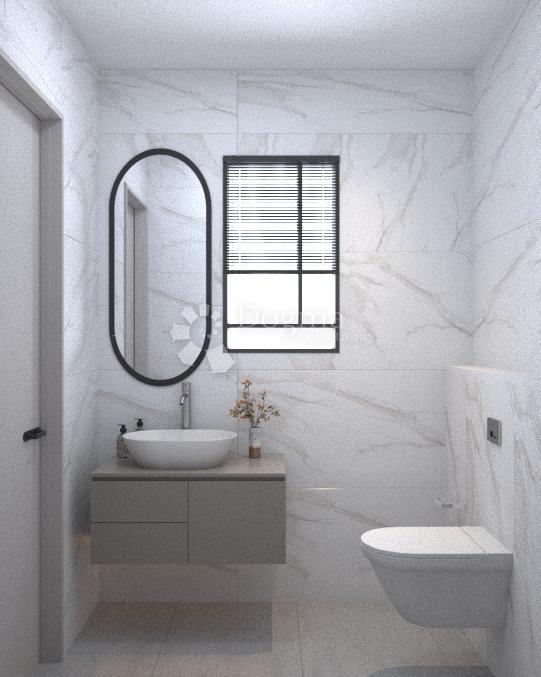 Apartman je veličine 70,25 m2 i sastoji se od hodnika, toaleta, kupaonice, dvije sobe, open space kuhinje, blagavaone i dnevnog prostora, te izlaza na natkrivenu terasu veličine 21,45 m2 i pripadajući vrt od 100 m2. Apartmanu pripadaju dva parkirna mjesta.