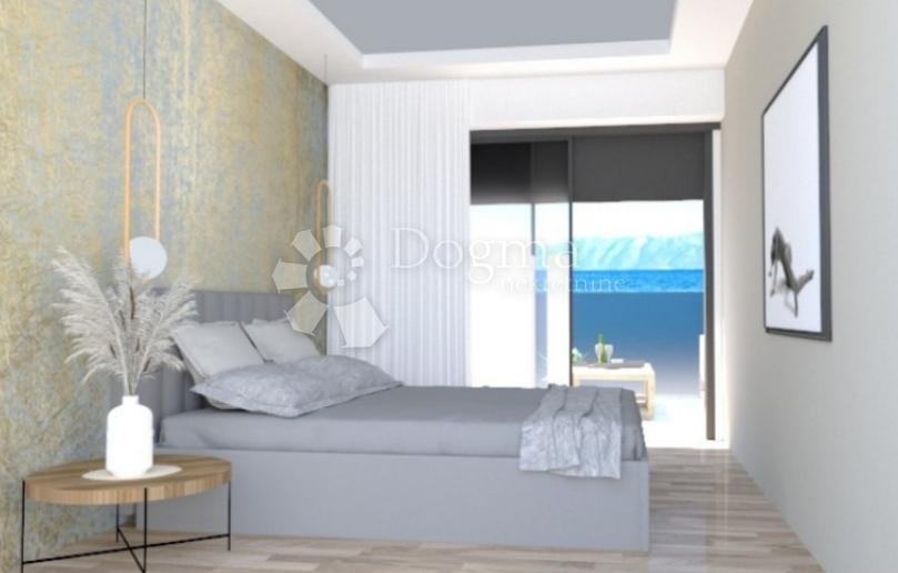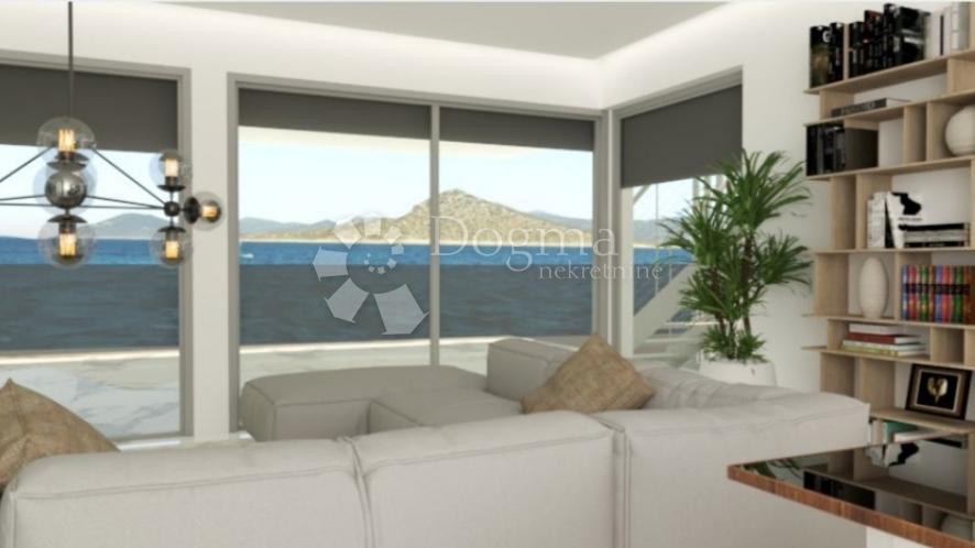 Unutarnjim stepeništem ide se na drugi kat gdje se nalazi toalet, open space kuhinja, blagavaona i dnevni prostor i izlaz na natkrivenu terasu s koje se pruža otvoreni pogled na more.