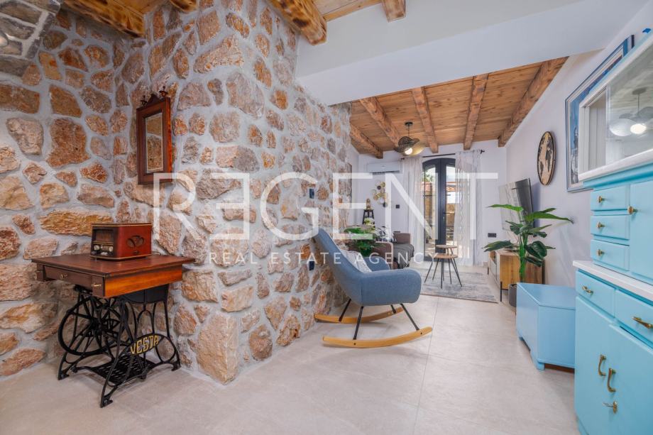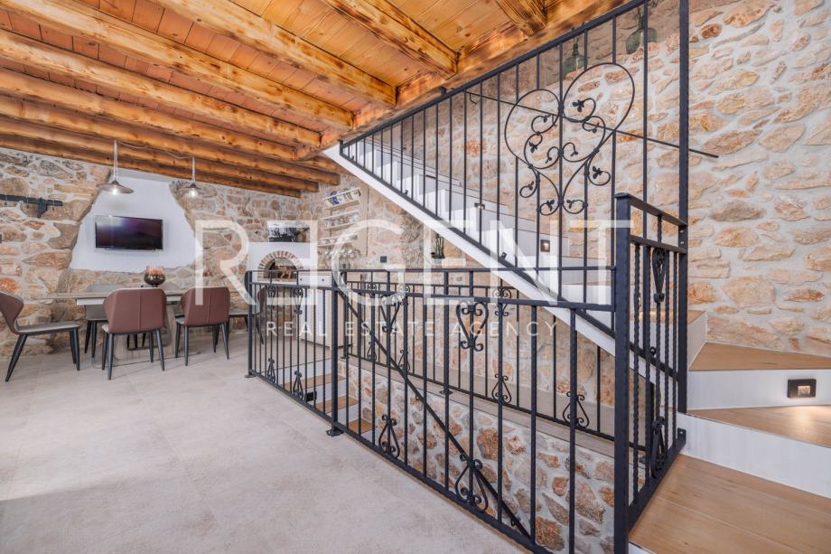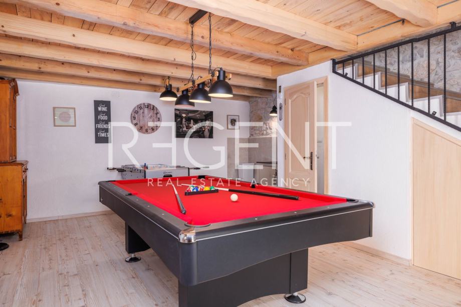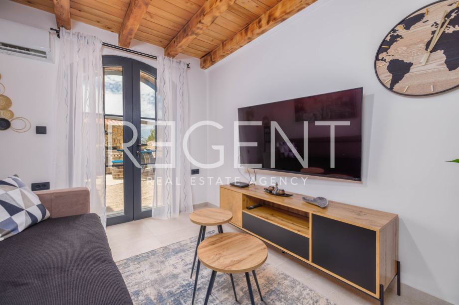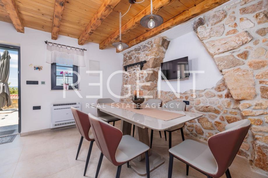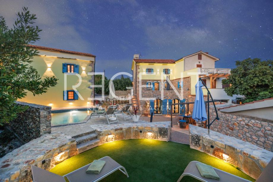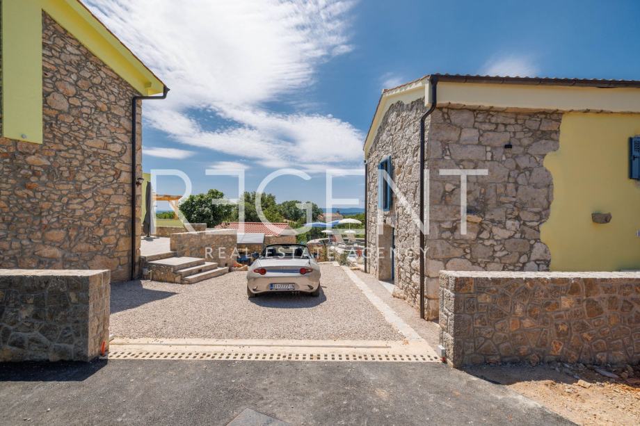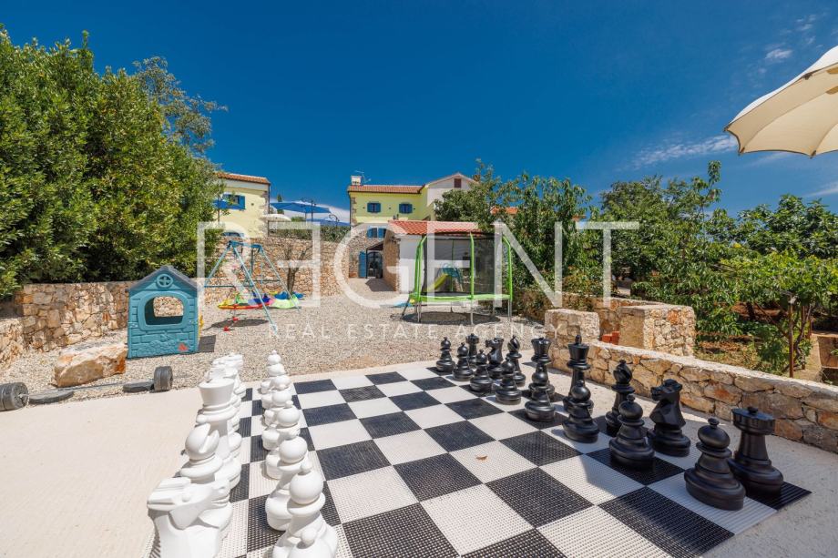 U pitoresknom mjestu Kras u blizini Krka koje nudi savršenu lokaciju za istraživanje cijelog otoka smjestilo se imanje koje se sastoji od 2 jedinice – glavne kuće i gostinjske kuće, i može smjestiti ukupno 6 do 8 osoba ukupne površine 135 m2.Villa Melary (glavna kuća) sastoji se od 2 spavaće sobe i dnevnog boravka, udobne spavaće sobe su potpuno opremljene i uključuju sve potrebne detalje za bezbrižan boravak. Potpuno opremljena kuhinja u rustikalnom stilu savršena je za pripremu domaćih jela, a dnevni boravak s udobnom sofom idealan je za opuštanje i druženje. Kuhinja i dnevni boravak nude ugodan ambijent uz suptilne tonove, detalje i ukrase.Gostinjska kuća je savršeno mjesto za zabavu i opuštanje, nudeći dodatni prostor za spavanje (sofa za 2 mlade osobe). Villa Melary nudi dodatne aktivnosti kao što su biljar, pikado, šah u pravoj veličini ili igralište, a ima i igraonicu s PlayStationom 5. Opustite svoj um u igraonici i zatim se osvježite u prekrasnom bazenu s jacuzzijem (4×4 m).Ljubitelji sporta uživat će u biciklističkim stazama i istraživanju obližnjih staza. Ova zadivljujuća regija, sa svojim bogatstvom zelenila i prirode, opustit će vaše tijelo i pružiti vam dodatnu energiju. Miris borovih šuma, cvijeća, maslina i lavande simbol je ove regije, a prekrasni mali putevi i staze vodit će vas do brojnih novih otkrića.DESTINACIJAKras je mirno naselje u unutrašnjosti otoka koje se nalazi na raskršću puteva između Dobrinja, Malinske i grada Krka. Odnedavno je ondje niknulo niz luksuznih i ruralnih vila u netaknutoj prirodi. Savršeno za one koji ne vole biti usred turističkih središta, ali opet i ne predaleko. Za samo 5-15 minuta nadohvat su vam plaže, trgovine i restorani u gradu Krku ili Malinskoj.Kontaktirajte nas za više informacija! Za više informacija, kontaktirajte našeg agenta na brojeve telefona: