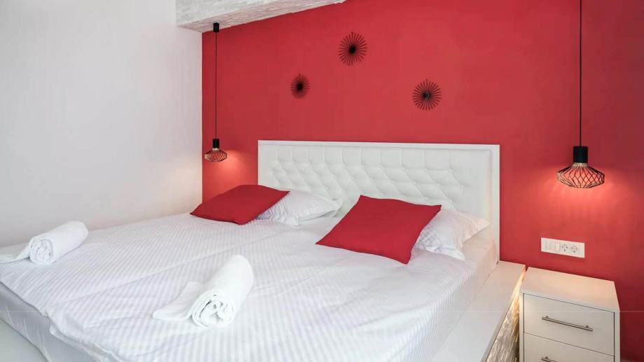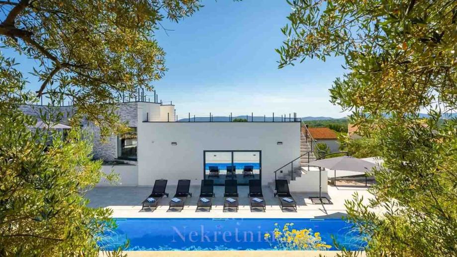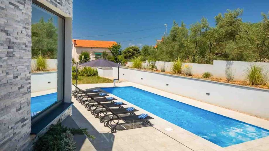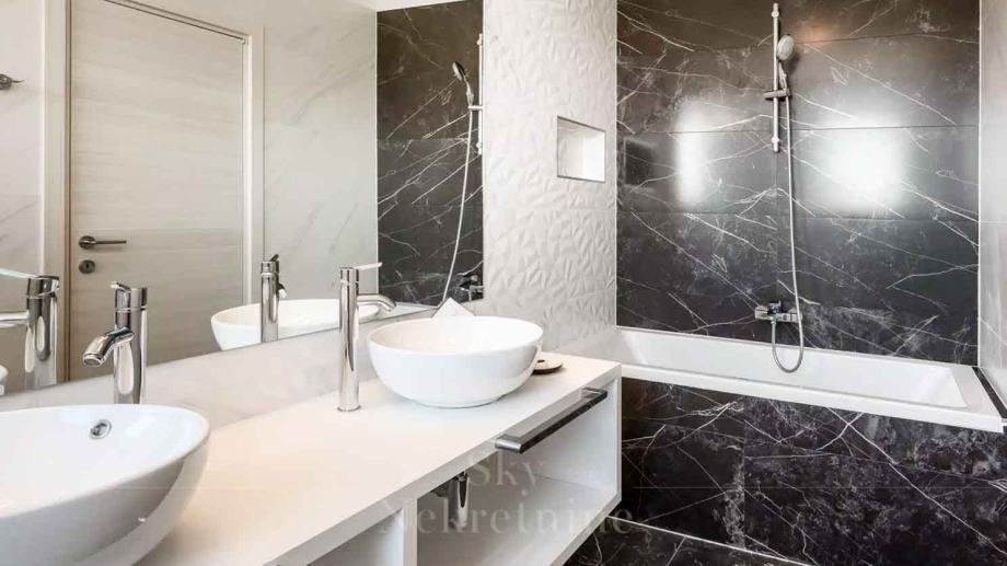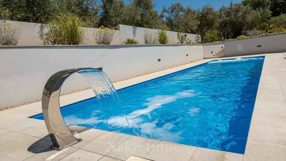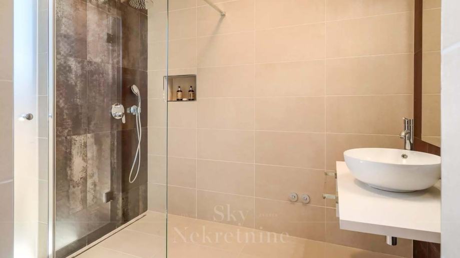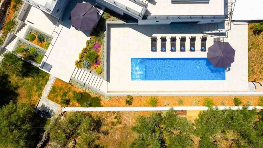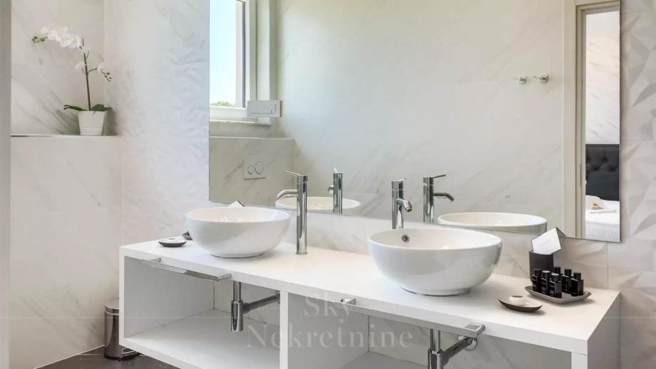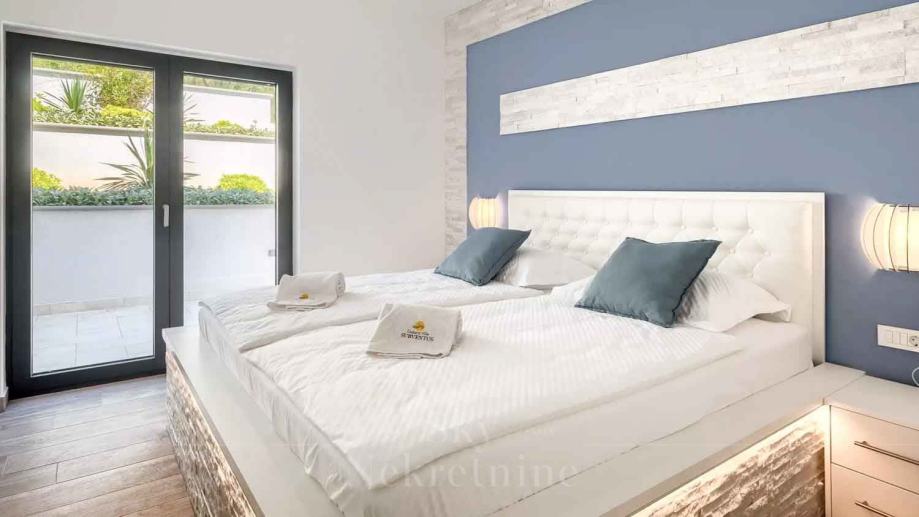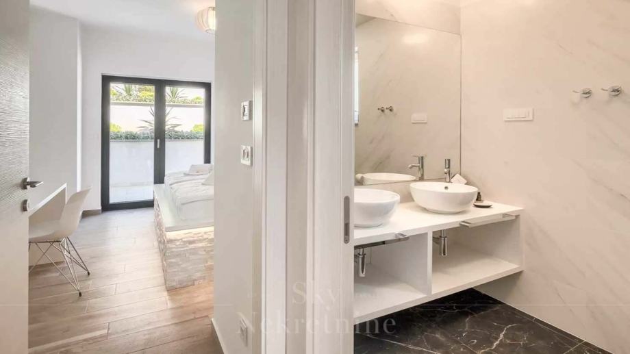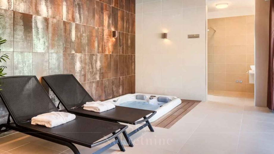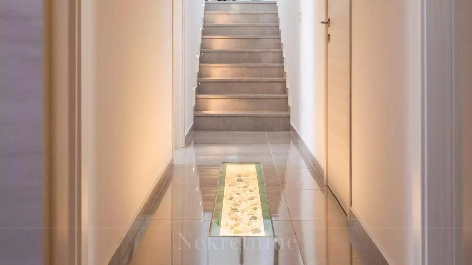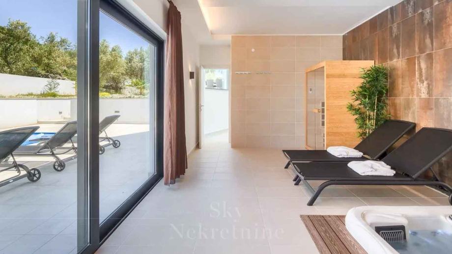 U prizemlju vile nalaze se tri spavaće sobe, dvije kupaonice, prostoriju za strojeve, podrum i skladišne prostore. Međukat je rezerviran za wellness centar opremljen jacuzzijem i saunom.