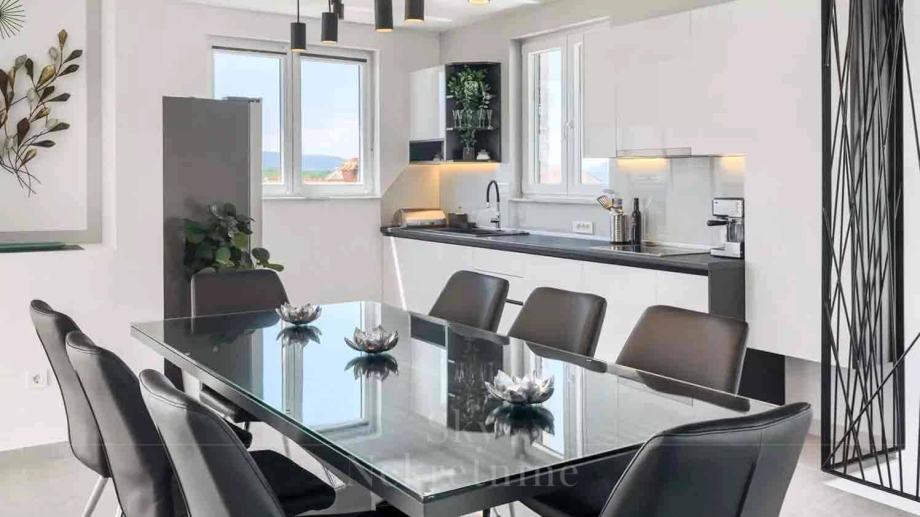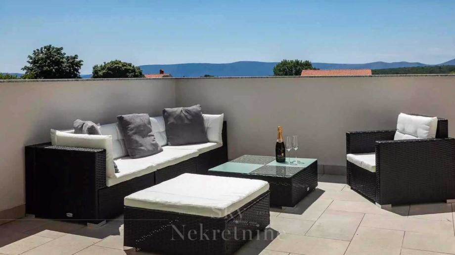 Agencija Sky nekretnine predstavlja suvremenu rezidenciju ukupne površine od 163,45 m2, smještena u malom naselju između Krka i Malinske. Samo 3 km udaljena od obale. Ova izuzetna nekretnina smjestena je na prostranoj parceli od 1150 m2. U sklopu nekretnine nalazi se i dodatni prostor od 36,5 m2.