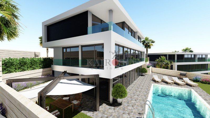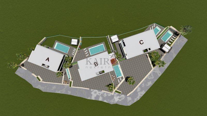 KRK, luksuzne vile smještene u mirnom dijelu Krka, nadomak plaže i centra grada, projekt obuhvaća tri identične vile sa četiri apartmana. Apartmani u prizemlju i prvom katu imaju prekrasnu okućnicu sa bazenom, a na katu terase sa kojih se pruža prekrasan pogled.