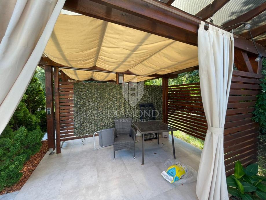 Posebnu čar ovom apartmanu daje prekrasna terasa ispred zgrade, idealna za opuštanje i druženje, uz kameni roštilj koji upotpunjuje mediteranski ugođaj.