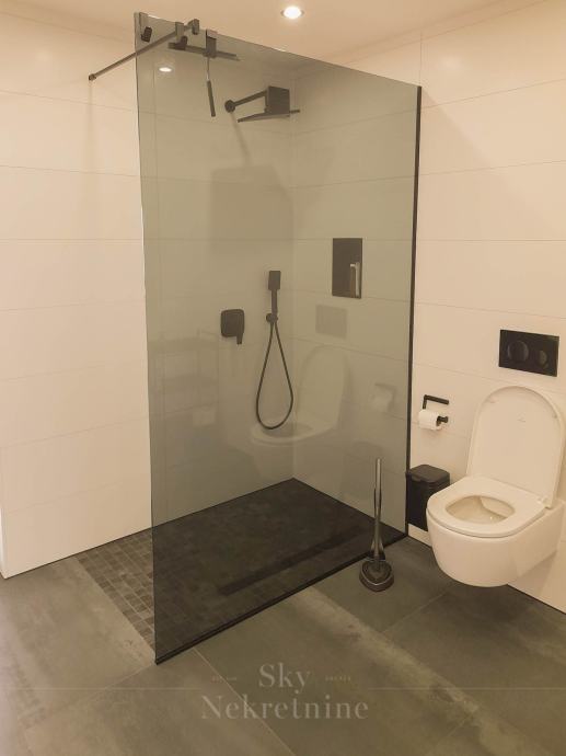 S gornje etaže izlazi se na veliku terasu veličine 50 m2 s prekrasnim pogledom na more.
